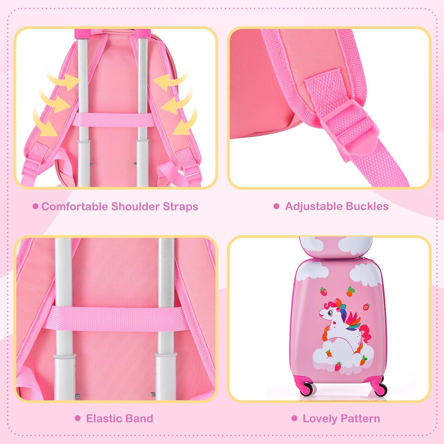 HONEY JOY Kids Luggage, 12" Toddler Backpack & 16" Travel Suitcase with Wheels, Lightweight Toddler Girls Suitcase, Durable ABS Hardshell, 2Pcs Carry On Luggage Set for Boys Girls(Unicorn)