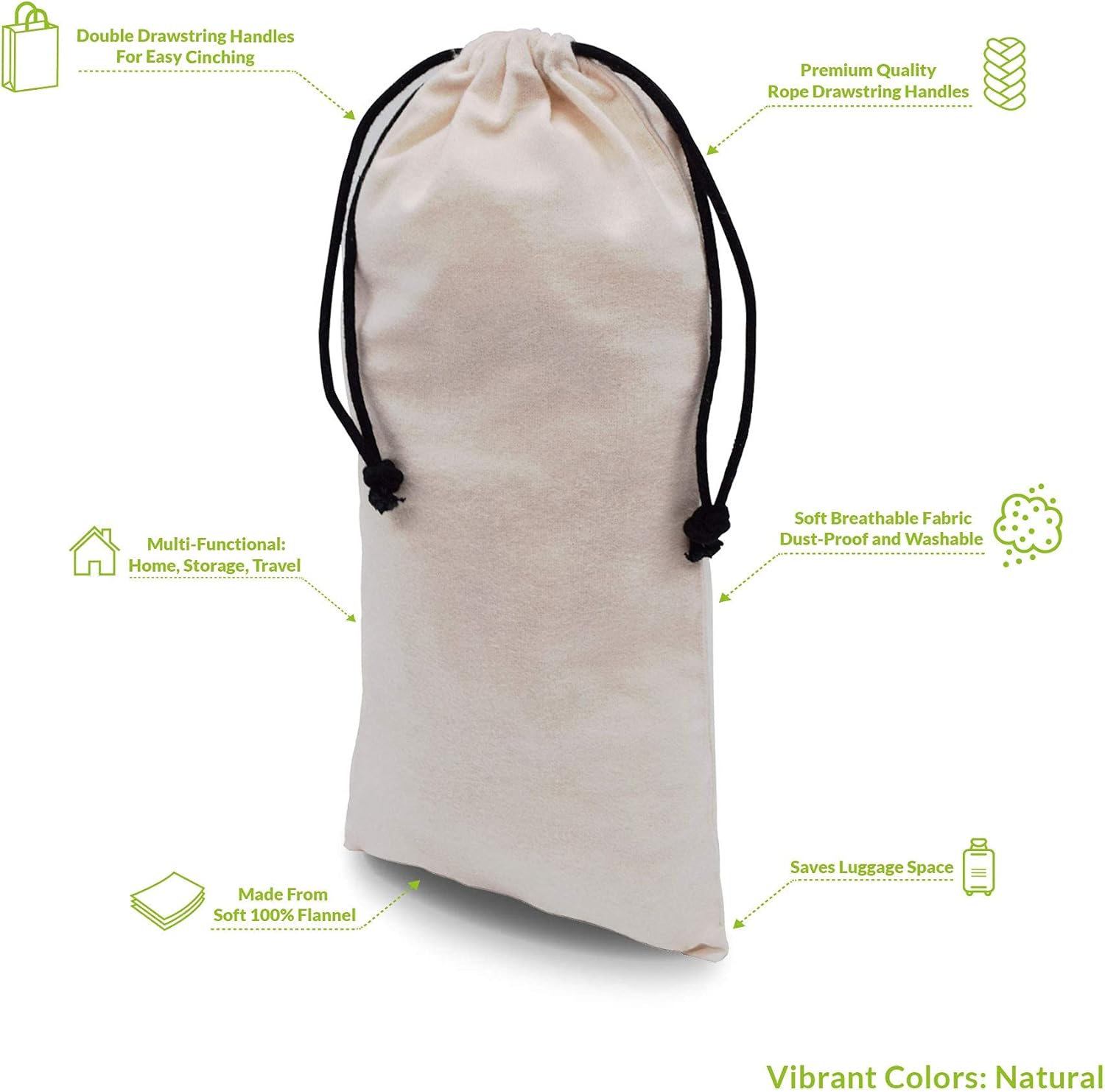 - DURABLE BREATHABLE MATERIAL - Made from 100% certified organic dust-resistant cotton, these duster bags will keep your shoes and valuables fresh and safe while stored away