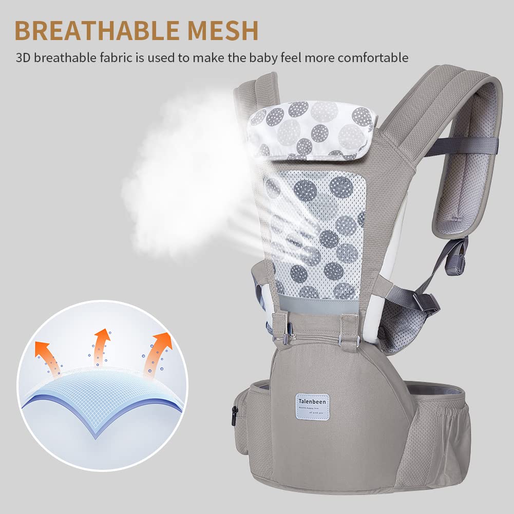 - 【Multifunctional Baby Carrier】 1. 3D mesh fabric, breathable, not stuffy, make baby and mother feel more comfortable; 2. Zipper buckle is designed for easy disassembly and cleaning; 3. Special velcro firmly fastens but will not attach any hair or hurt your clothes; 4. There are 2 pockets on the waist, allowing you to access the baby bottle, your phones, keys, credits cards, etc.