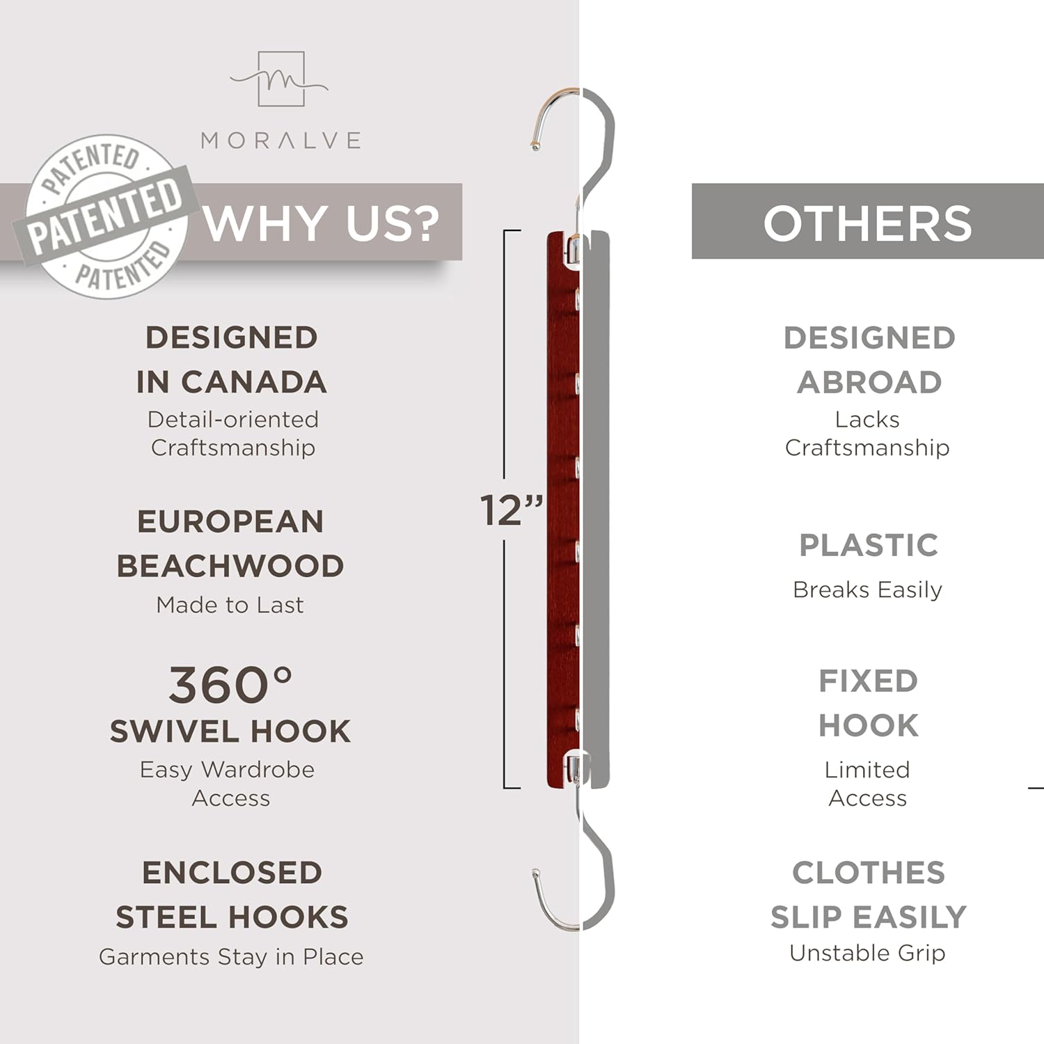 MORALVE Space Saving Hangers for Closet – 4 Pack European Beechwood 6-Tier Shirt Organizer with 360° Swivel Hook – Collapsible Clothes Hanger for Closet Organization (Hangers Not Included)