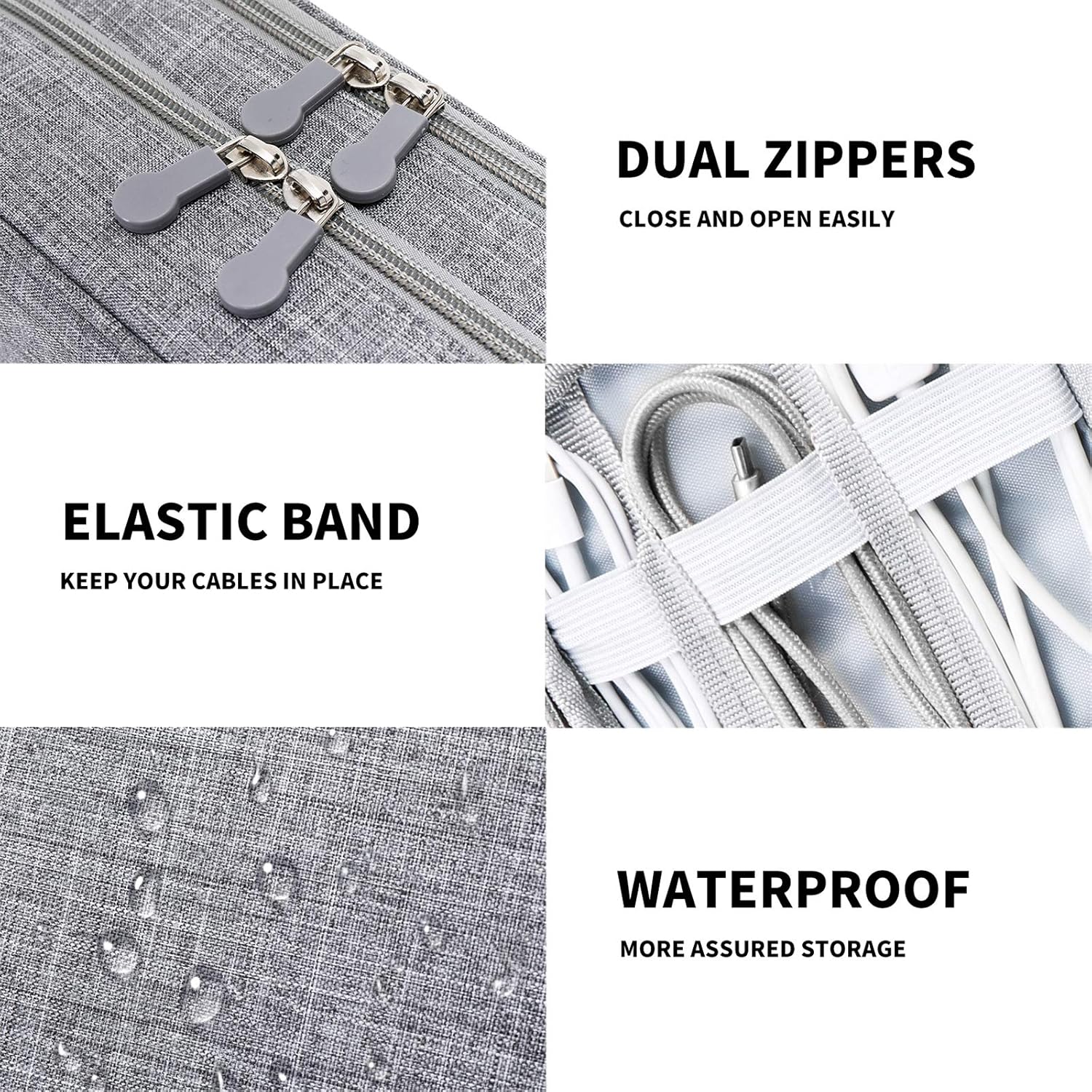 Lanola Travel Cable Organizer Bag, Electronic Accessories Case Portable Double Layer Cable Storage Bag for Cord,phone,Charger, Flash Drive, Phone, SD Card,Personal Items - (Grey)