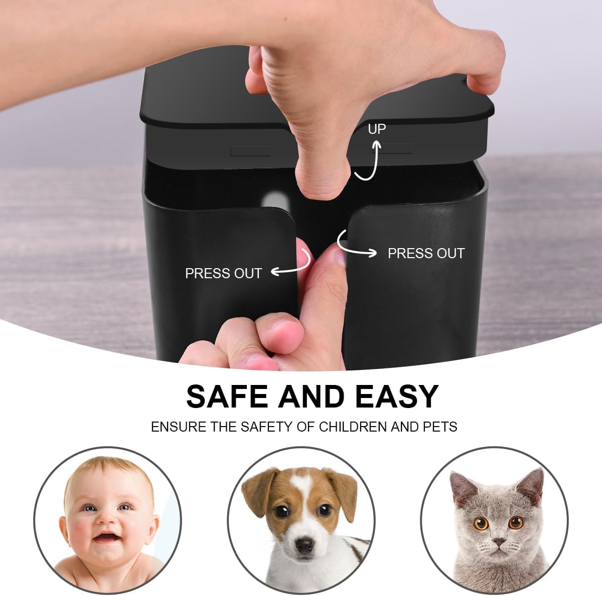- [STYLISH & SAFE] With a stylish black finish and plastic lid of fine design, not only will it blend neatly with any decor and look stunning, but also protect your kids or pets away from electronics danger
