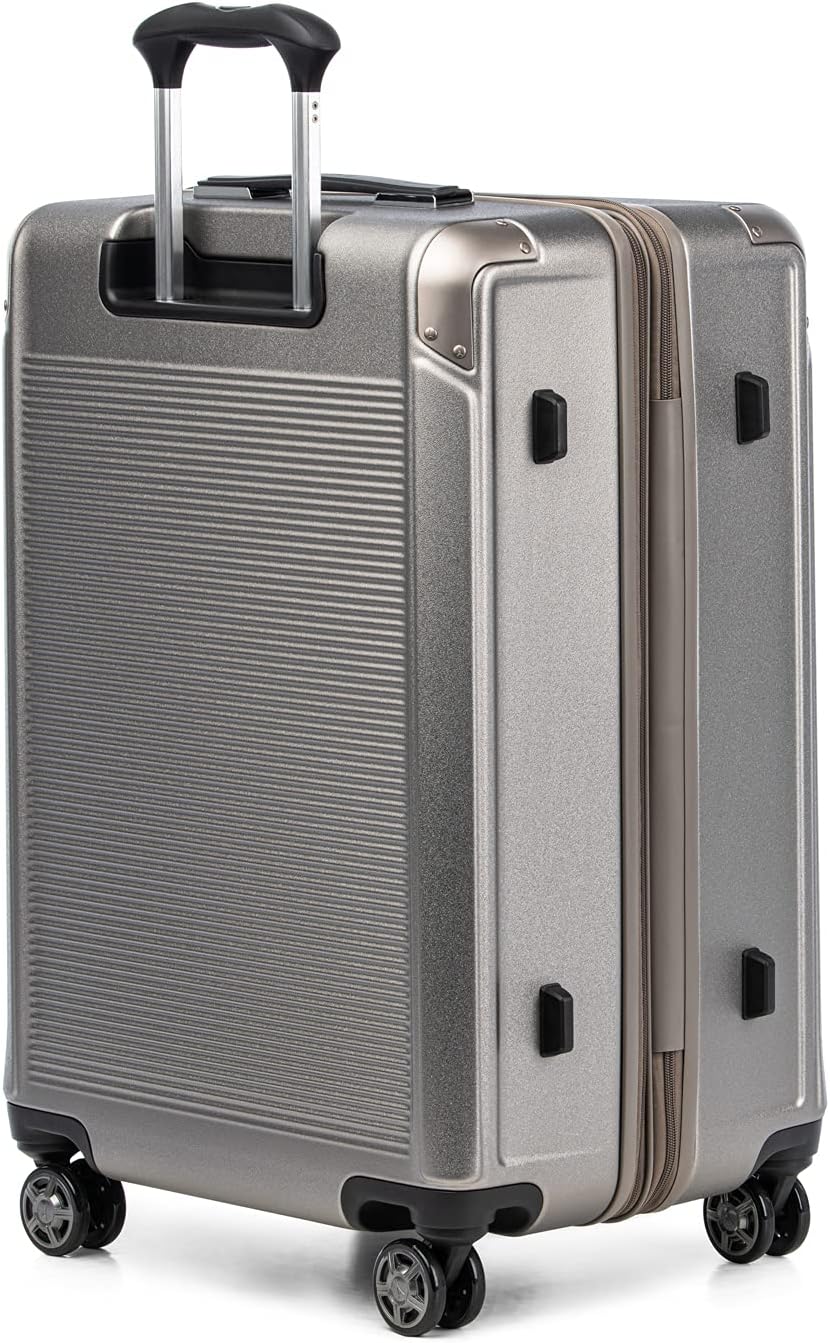 Travelpro Platinum Elite Hardside Expandable Checked Luggage, 8 Wheel Spinner, TSA Lock, Hard Shell Polycarbonate Suitcase, Metallic Sand, Checked Medium 25-Inch