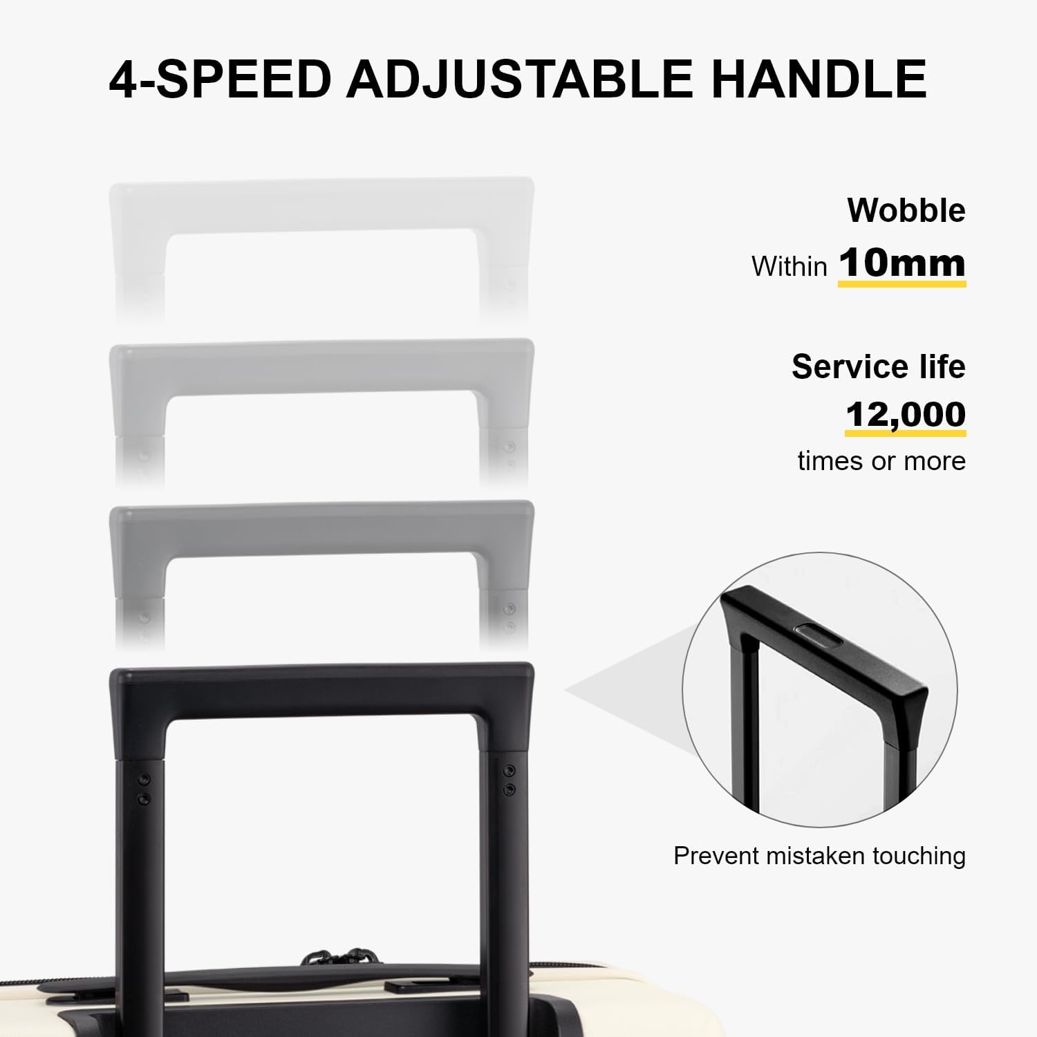 - More Effortless Traveling: This suitcase equipped with 8 silent universal spinner wheels and aluminum telescoping ergonomic handle with 4 levels for effortless control and maneuverability; Equipped with top and side easy grab handles; Bumper feet on side for protecting the case