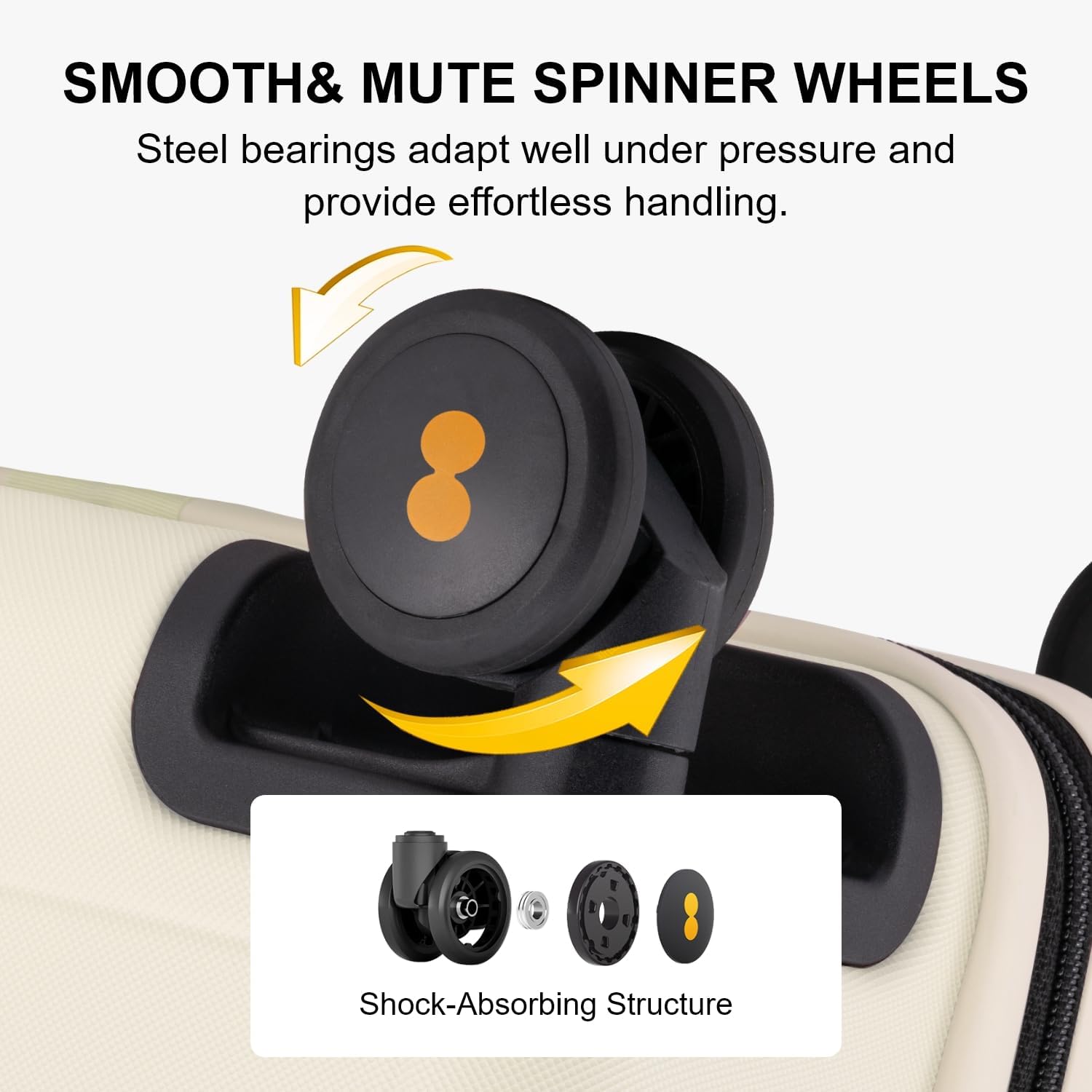 LEVEL8 Carry on Suitcase for Women Men, Carry-on Luggage Airline Approved, Travel Bag with Spinner Wheels, Lightweight Luminous Textured Hard Shell, Tsa Lock, 20 Inch, Cream White