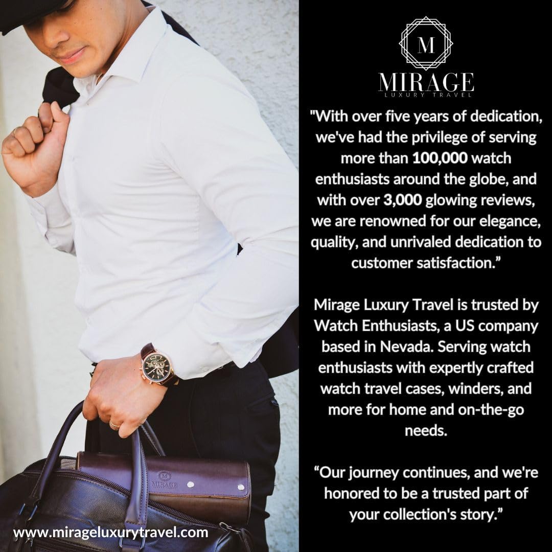 - 🎁 UNFORGETTABLE GIFT FOR WATCH LOVERS – Treat yourself or make someone smile with our elegant watch cases for men. The Mirage collection offers a perfect selection for all your watch accessory needs, whether for display or travel. Check out our storefront, explore our range of luxury travel products, and find the perfect gift to make every day memorable. 30-DAY MONEY BACK GUARANTEE, there is nothing to worry about. 😊