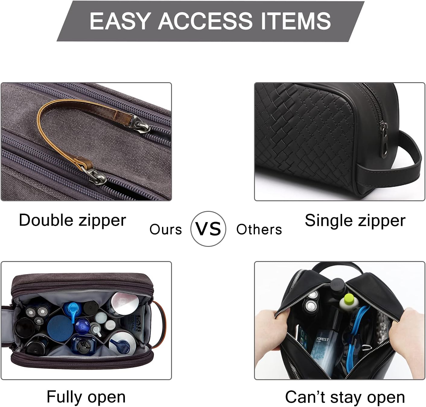 - ๐๐๐ซ๐ฌ๐๐ญ๐ข๐ฅ๐ ๐ ๐๐๐ญ๐ฎ๐ซ๐๐ฌ- Dopp kit is equipped with a sturdy leather handle, inner elastic band , fashion canvas material to meet different storage needs.