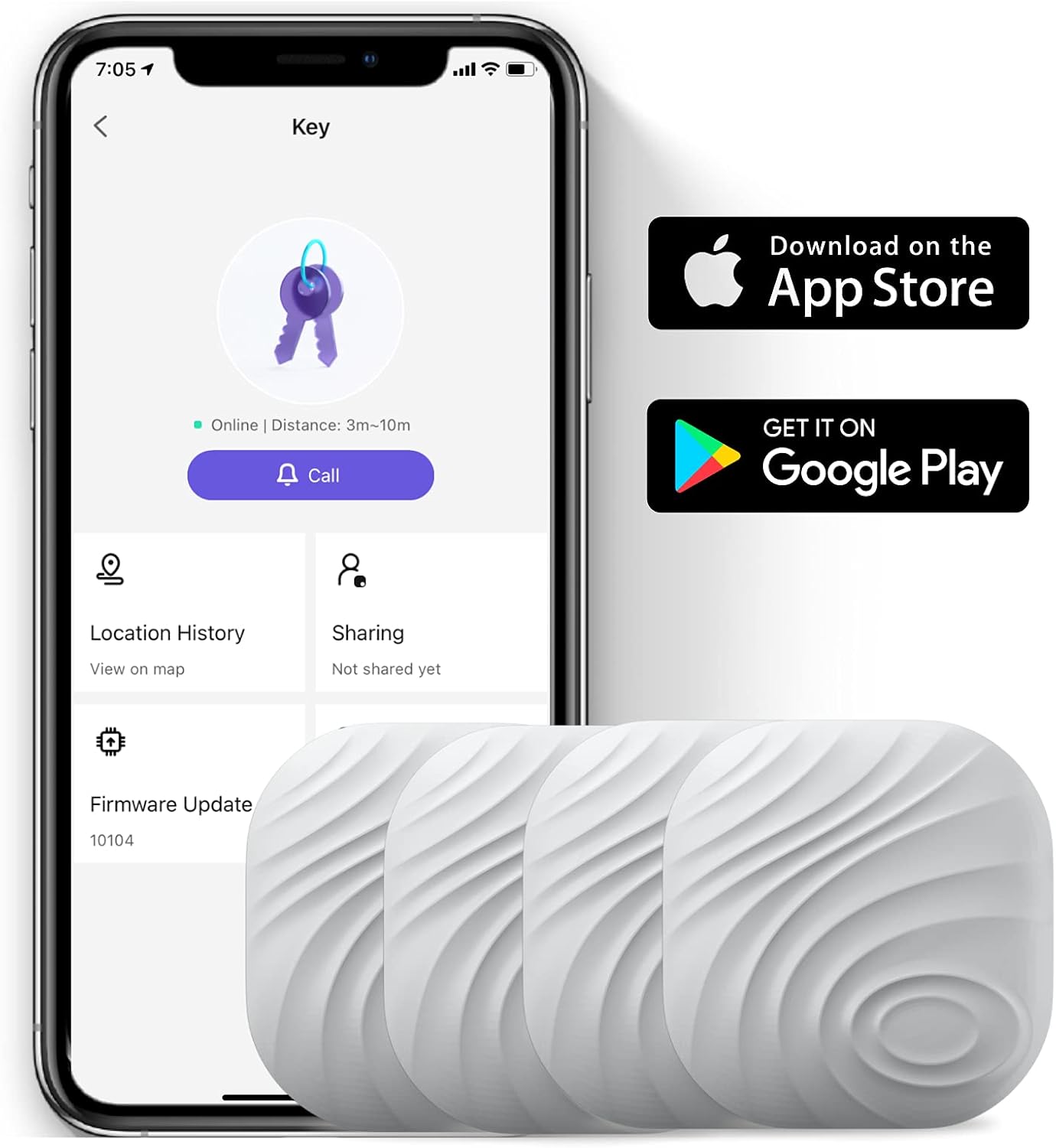 - ►【One Touch Find】The key finder that makes music helps you find misplaced items quickly; Click the "CALL" on the App to make your key finder ring and find anything quickly.