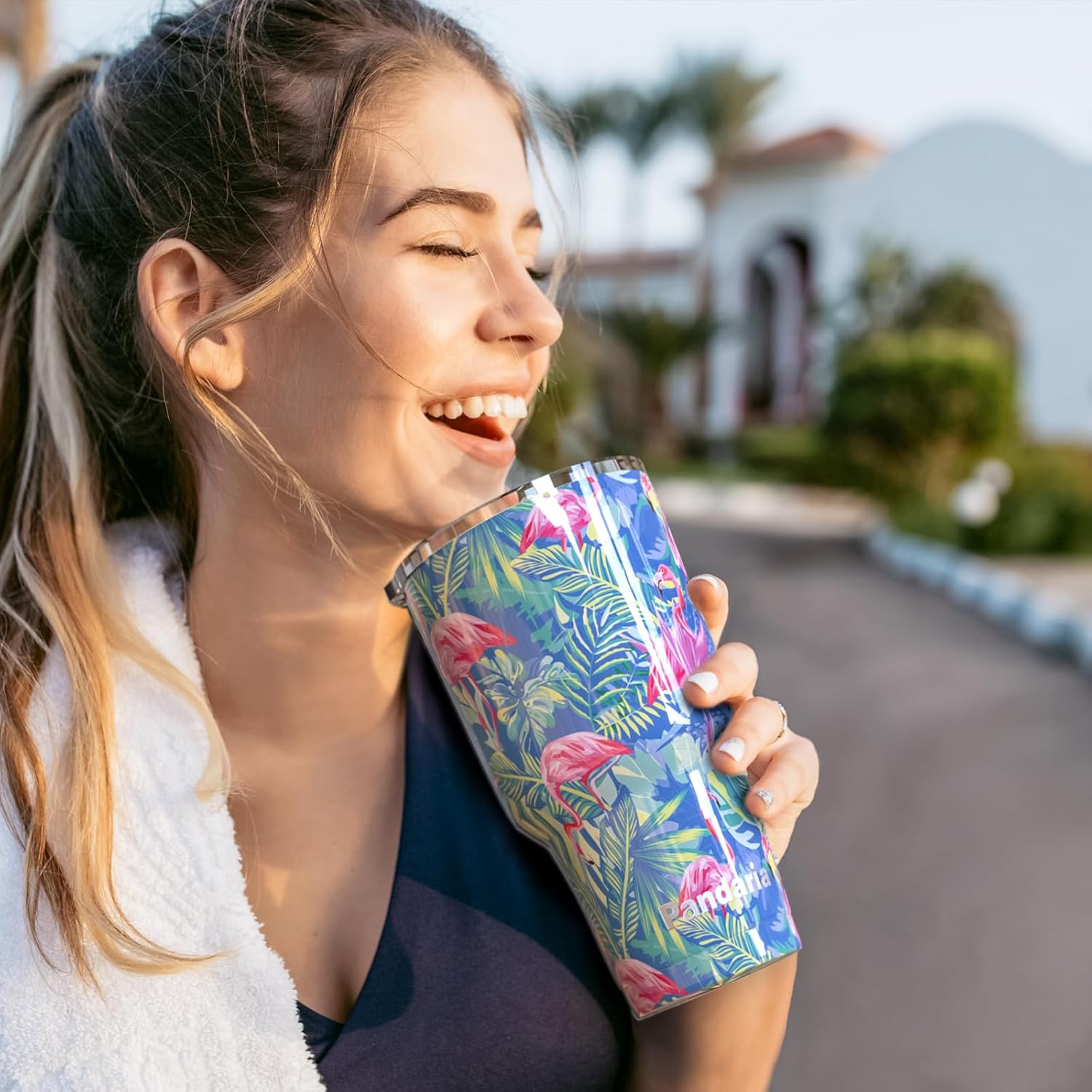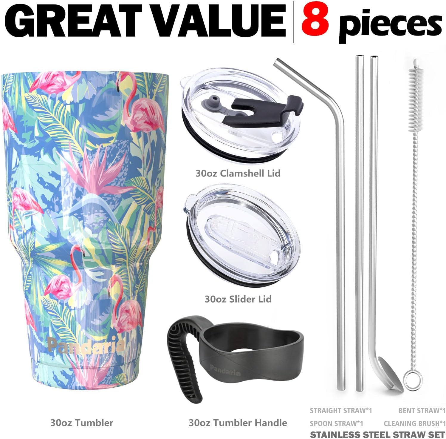 - ✅【Ultimate Hydration Solution】Stay refreshed and hydrated with our tumbler for iced coffee. The Pandaria insulated tumblers 30 oz is perfect for both hot and cold beverages. The advanced vacuum insulation technology of the tumbler leak proof ensures your drinks maintain the desired temperature for hours, making it an ideal mixed drink stainless steel tumbler with handle for all-day hydration. Whether you're at the gym or office this 30 oz tumbler with handle and straw is a perfect solution.