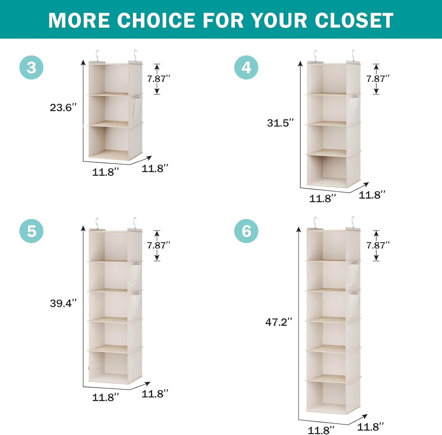 - ăSuitableă: Our closet hanging storage solution allows you to optimize your closet space. With six shelf units, it is perfect for individuals in need of additional storage but lacking sufficient closet space. It also offers an efficient space utilization option for those seeking to maximize their storage capacity.