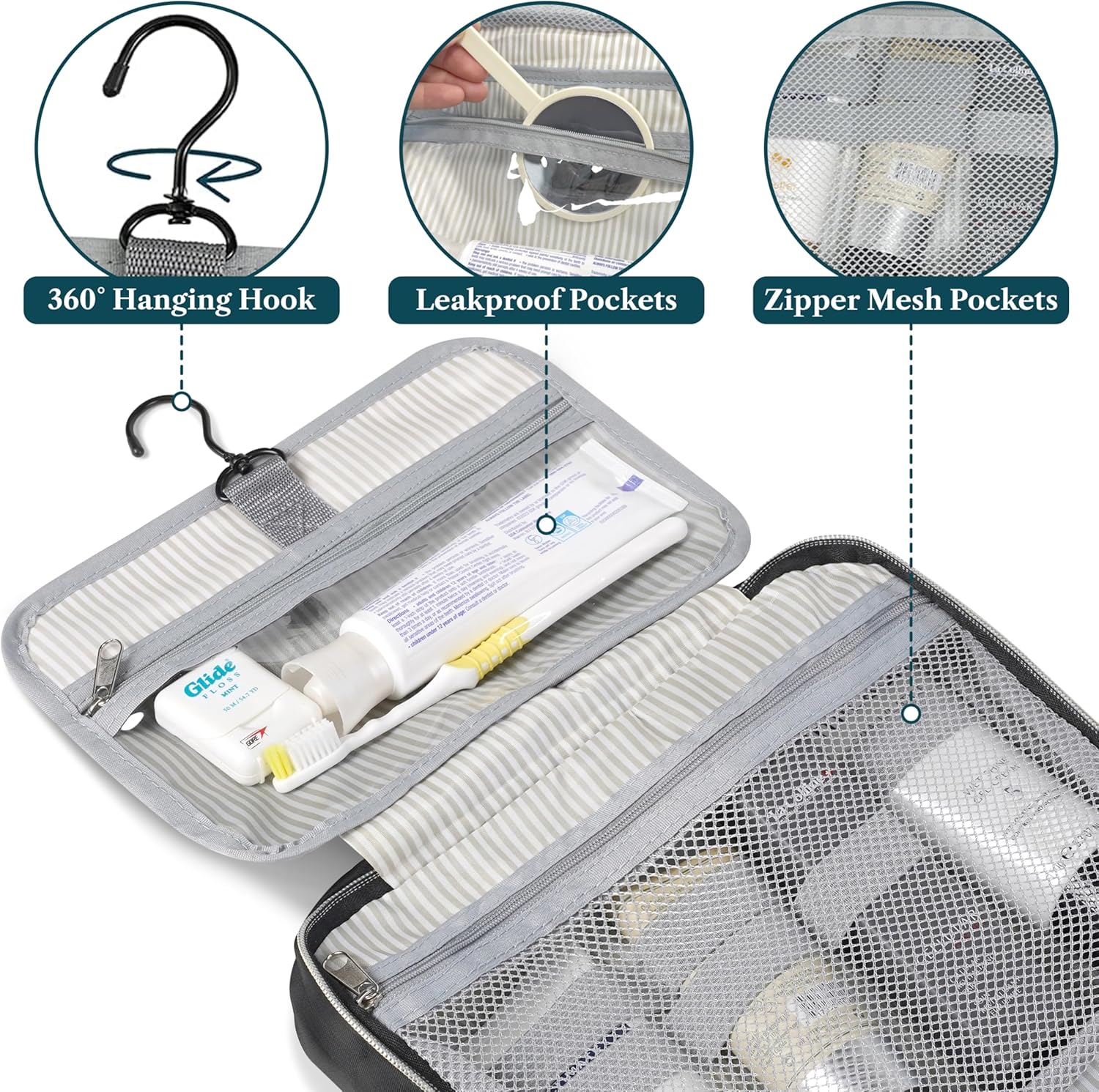 - EASY TO CLEAN: Simply wipe clean with damp cloth to maintain the toiletry bag travel bag. With its water resistant polyester fabric and waterproof compartment, this travel kit for women keeps your travel-size item, shampoo, conditioner, lotion, face wash, medicine, toothpaste, toothbrushes, hair brush and daily makeups protected and organized for every trip, cruise, flight! A must have for every travel packing list!