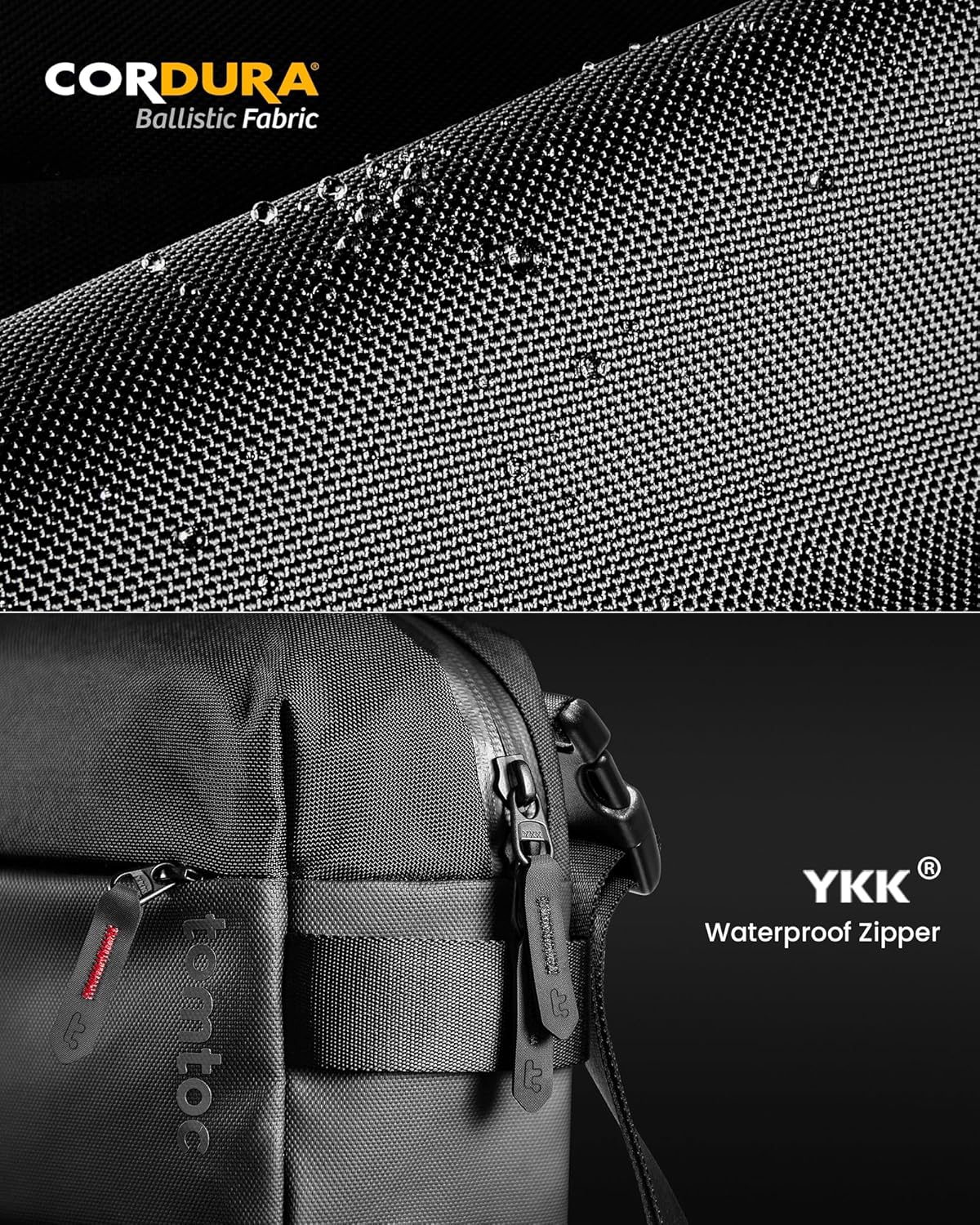 - Durability & Craftsmanship: This bag is made of CORDURA Ballistic Nylon fabrics, which are hard-wearing and water-repellent, the water-proof YKK zipper of the main compartment and Duraflex buckle offer protection and durability for all your journeys