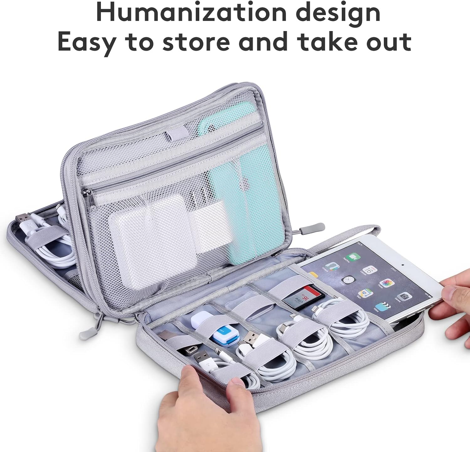 DDgro Cable Organizer Bag, Large Charger Cord Travel Case for Electronics & Tech Accessories (Large, Light Grey)