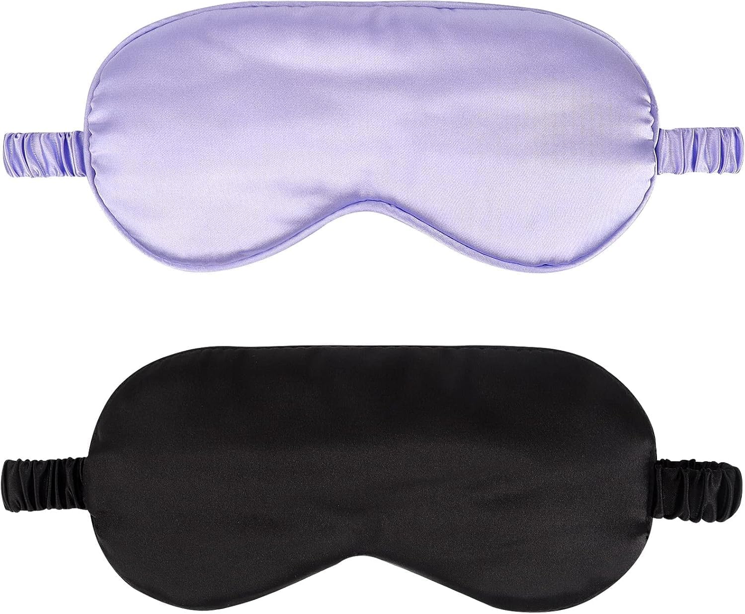 2Pack Silk Sleep Mask,IEKEODI Eye Mask for Sleeping,Elastic Blackout Eye Mask & Blindfold for Full Night's Sleep,Travel and Nap(Black+Purple)