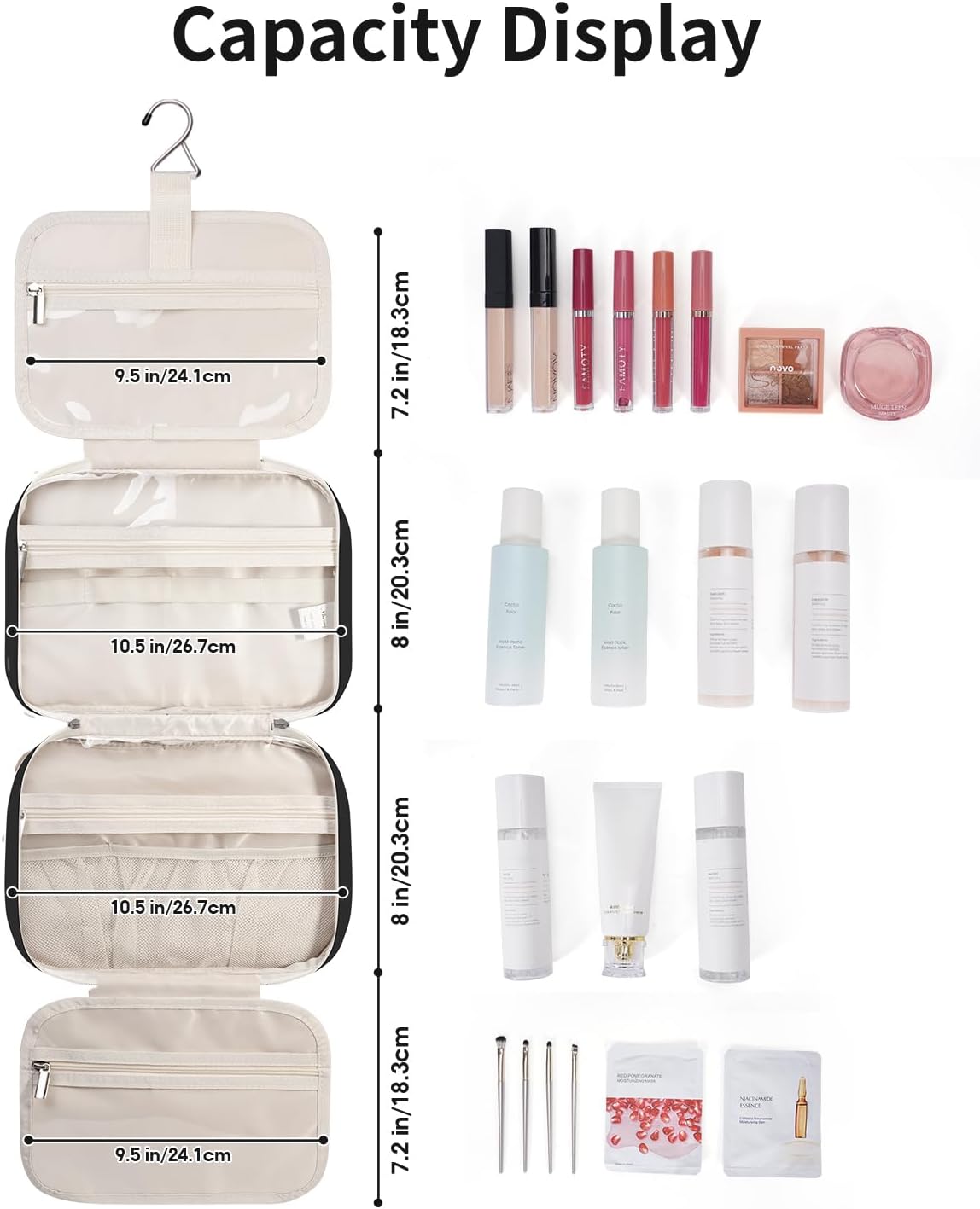 - Roomy interior fits shampoo, toothpaste, makeup, hairbrush, shaving kit - great for trips, gym, or home