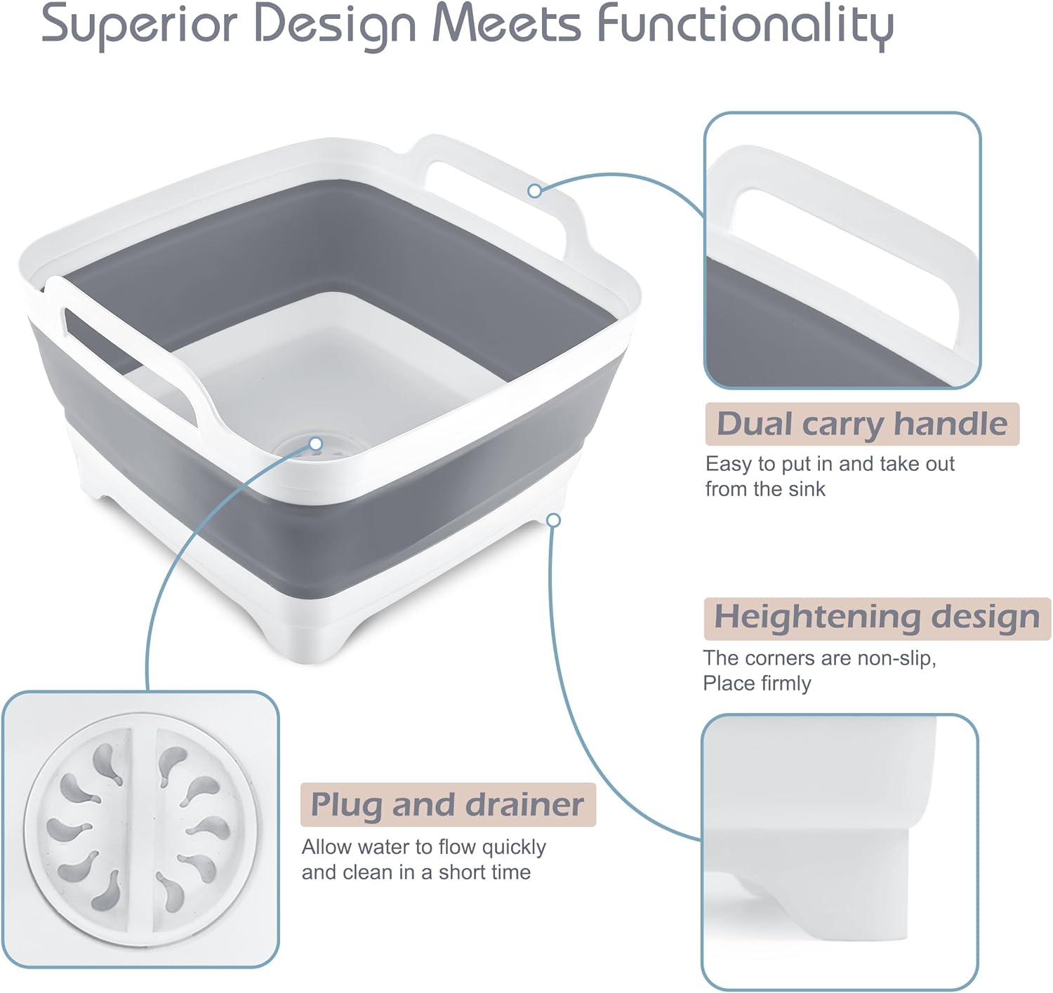 - 【Versatile & Multifunctional】This collapsible dish tub is versatile for everyday tasks. Use it as a dish pan, baby bottle washing bin, camping sink, beverage tub, puppy bath tub, and much more