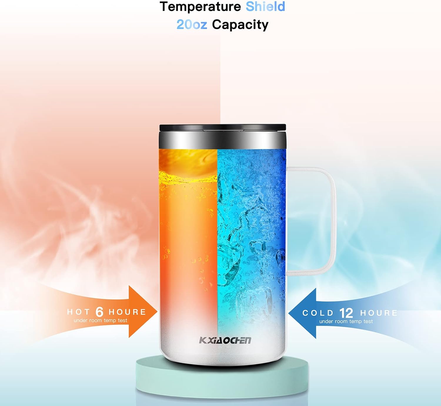 - INSULATED COFFEE MUG WITH HANDLE: 20oz coffee cup is large enough for heavy coffee lover at work, and also can be in beer gardens, home brews and the party. Insulated coffee mug with lid designed to keep your favorite hot, cold and carbonated beverages at the perfect temperature on the go.