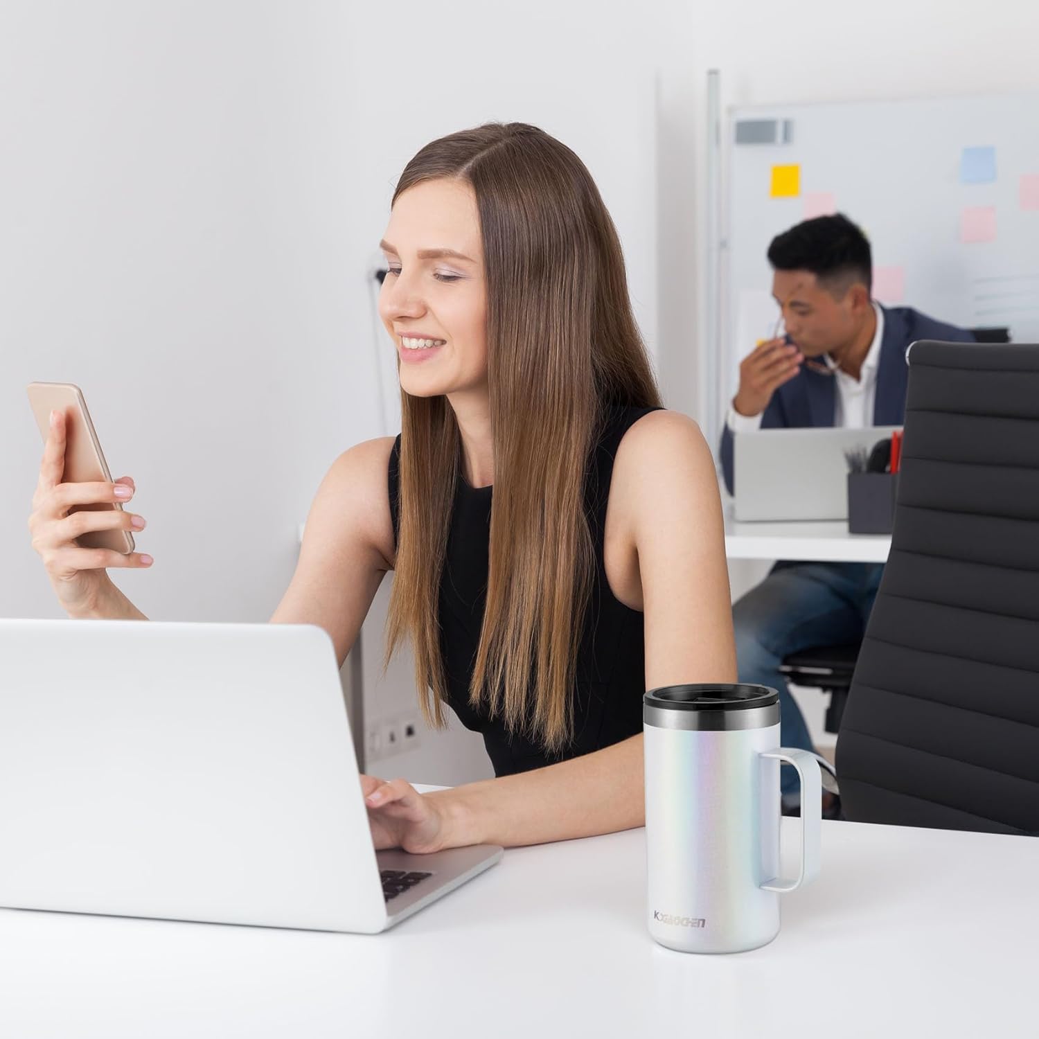 - PREMIUM SLIDING LID: The thermal mug has a new upgrade grey sliding lid, Drink hole on the top for easier sipping. BPA-free, Insulated coffee mug with lid and handle have a No Sweat Design to make sure your hands stay dry.