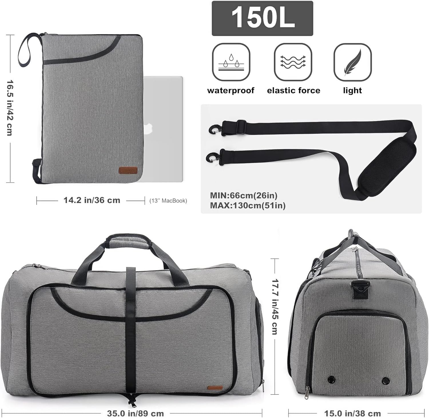 - [ Multipurpose Duffel Bag ] : This duffle bag is both stylish and practical, it could be served as duffel bags for traveling, weekender bag, overnight bag, moving bag, camping duffle bag, garment duffle bag, moving kids to college, etc. Avoiding excess baggage fees, pack souvenirs and replace broken suitcase(as a just-in-case bag) in travel. It also can be used as a dirty laundry compartment at home.