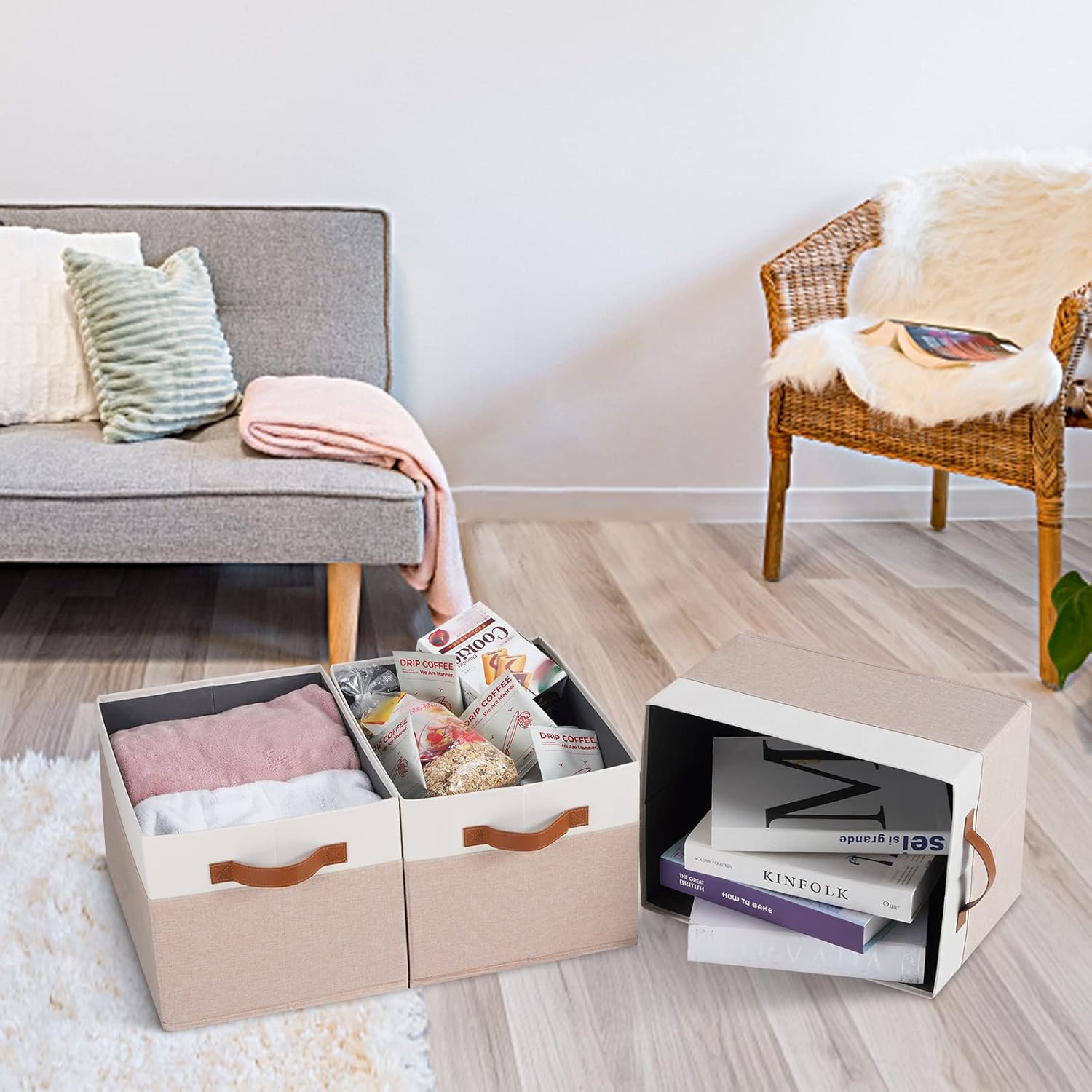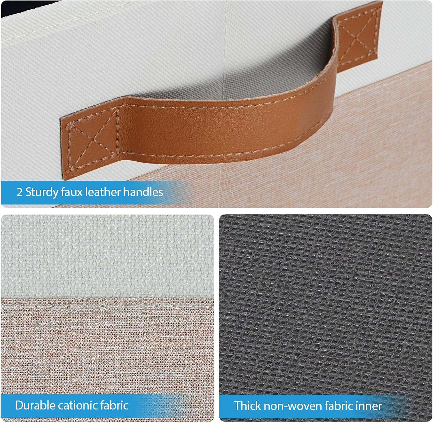 - 【Sturdy-Strong】There are stiff cardboards inserted in the bottom, lid and all side walls for support allowing these storage bins and keep them standing and structural integrity. This storage bins comes with a Sturdy faux leather handleson both side, strong handles convenient for you to pull out the bins from the shelves and easy carry to everywhere.