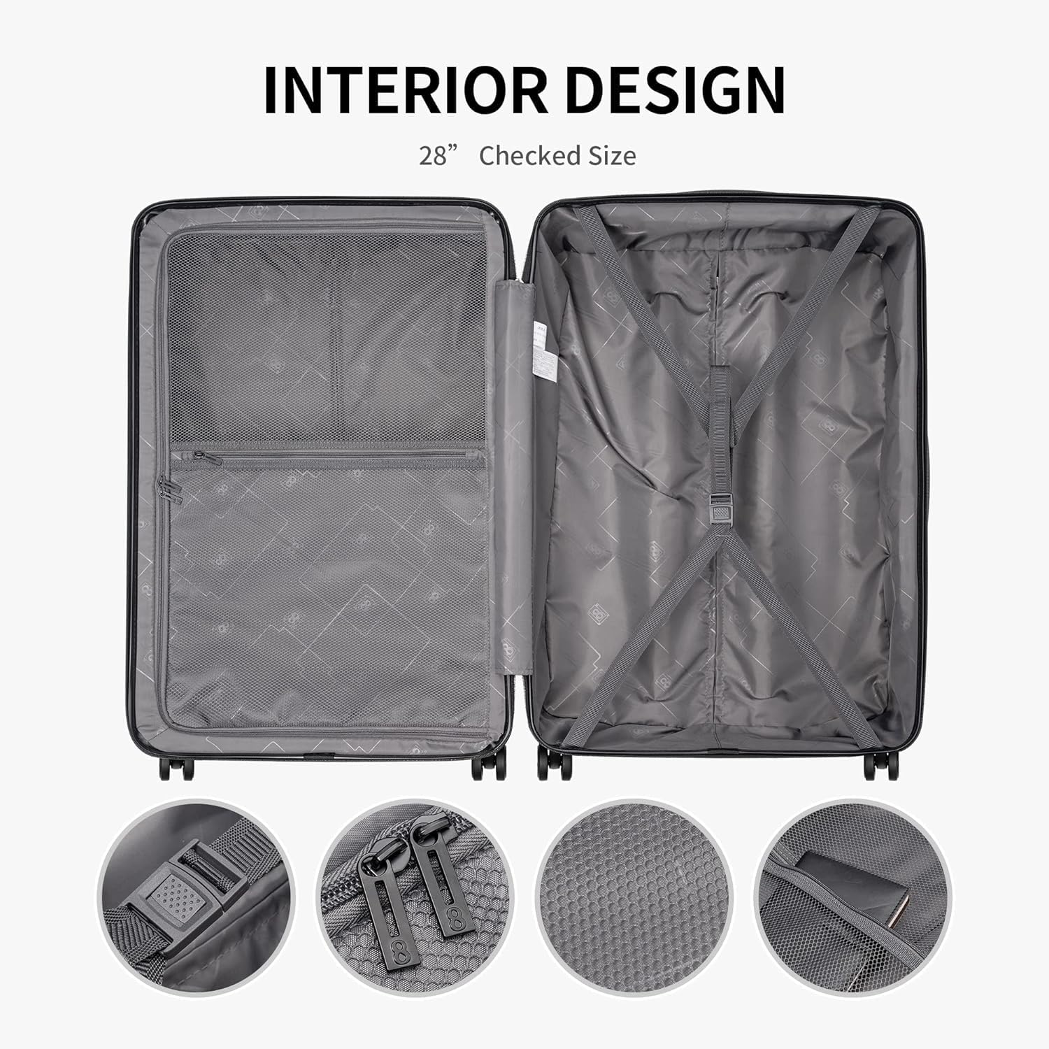 LEVEL8 Grace Luggage, 28 Inch Hardside Suitcase, Abs+Pc Harshell Spinner Luggage with Tsa Lock, Spinner Wheels, Black, 28 Inch