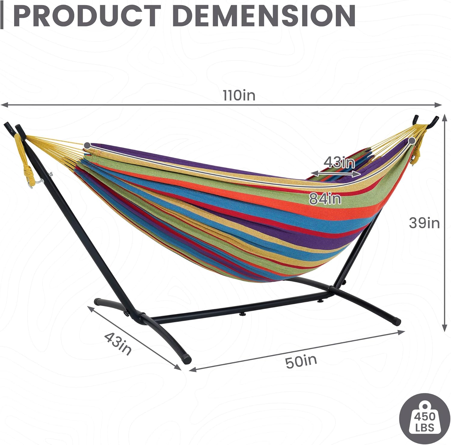 Lazy Daze Hammocks Double Hammock with 9 ft Space-Saving Steel Stand Includes Portable Carrying Case, 450 Pounds Capacity (Purple Stripes)