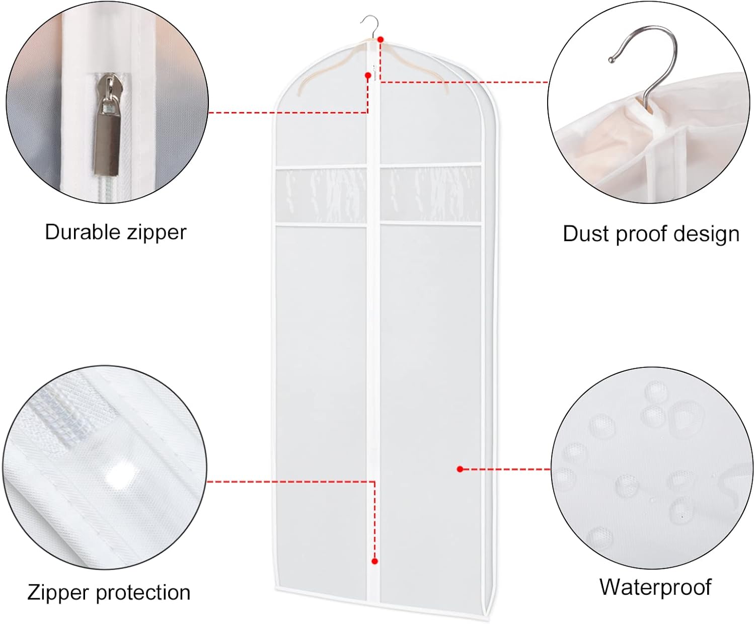 - 【Dress Garment Bag】 The long garment bags for dresses 60" are made of high quality PEVA material, durable, washable, lightweight, breathable and lifetime use. 2 inches bigger than standard bag. Sturdy and water resistant, keeping clothes fresh and wrinkle free.