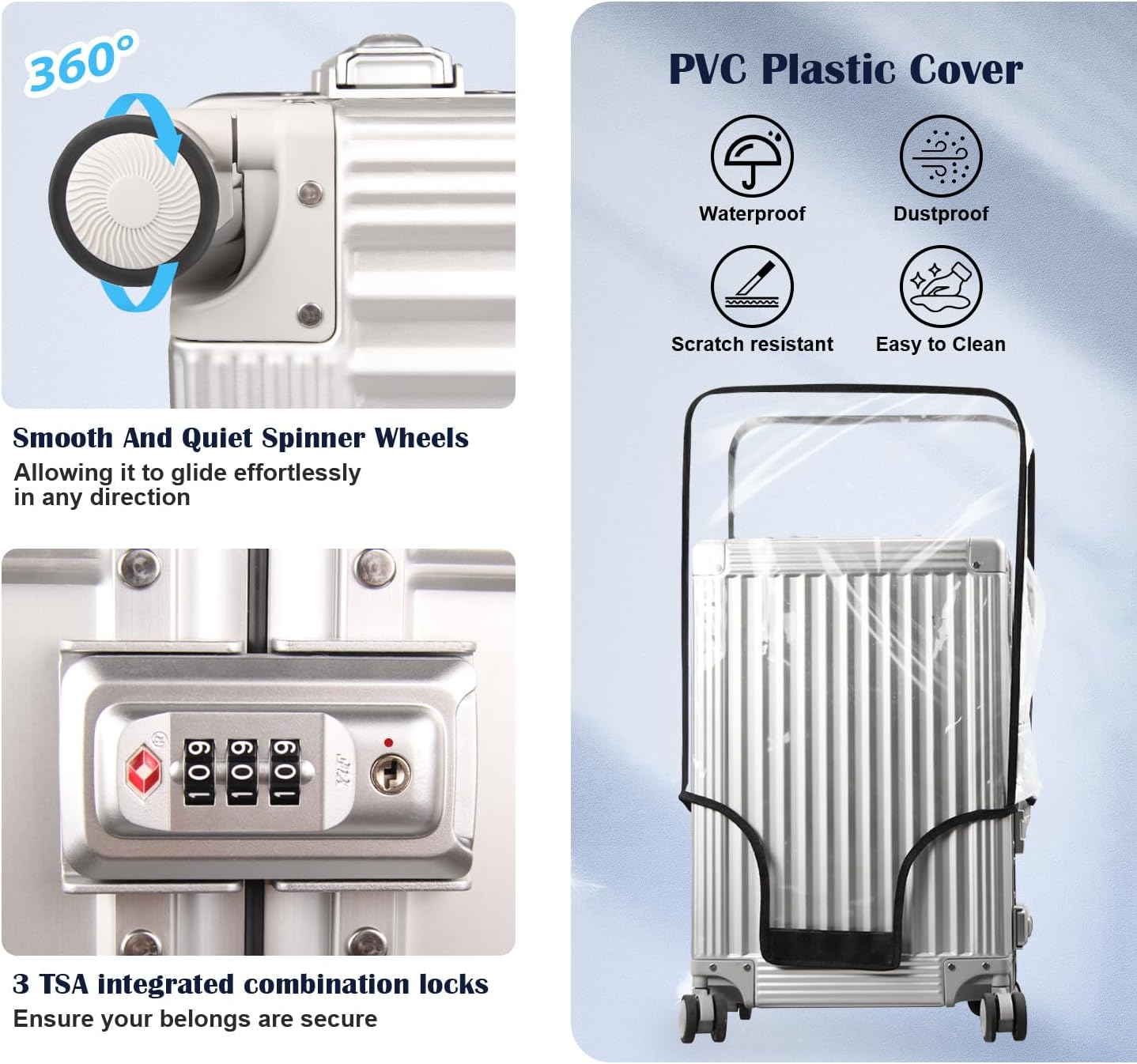 - 【Shiny And Sturdy Suitcase】: This Dominox luggage features a sleek and modern look with its aluminum hard side shell in a stylish silver color. The aluminum construction not only adds to the aesthetic appeal but also provides excellent durability and protection for your belongings. Vertical grain look makes it very high-end.