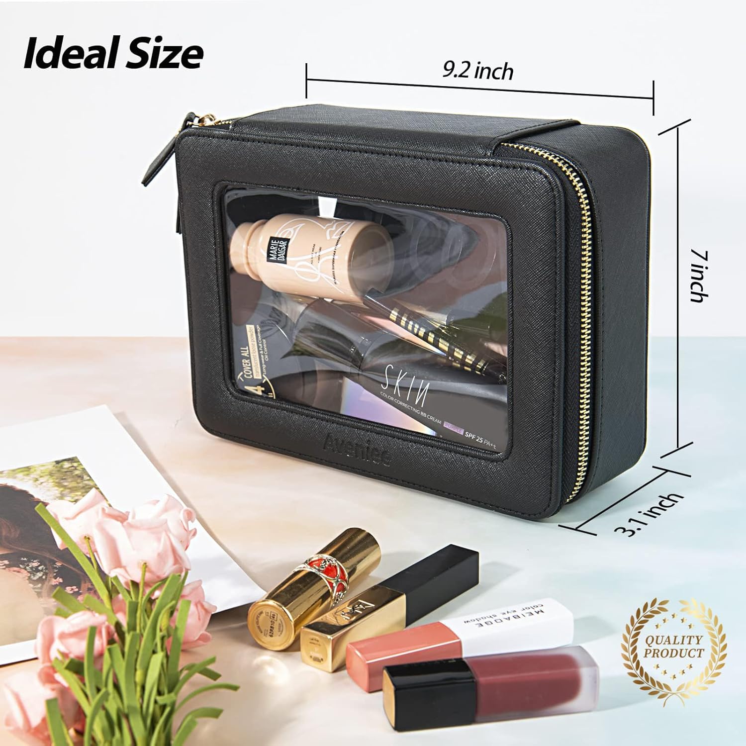 Aveniee Clear Makeup Bag Organizer,Large Travel Toiletry Bag for Women, Waterproof Cosmetic Pouch with Zippers,Car Organizers and Storage Case for Accessories,Black