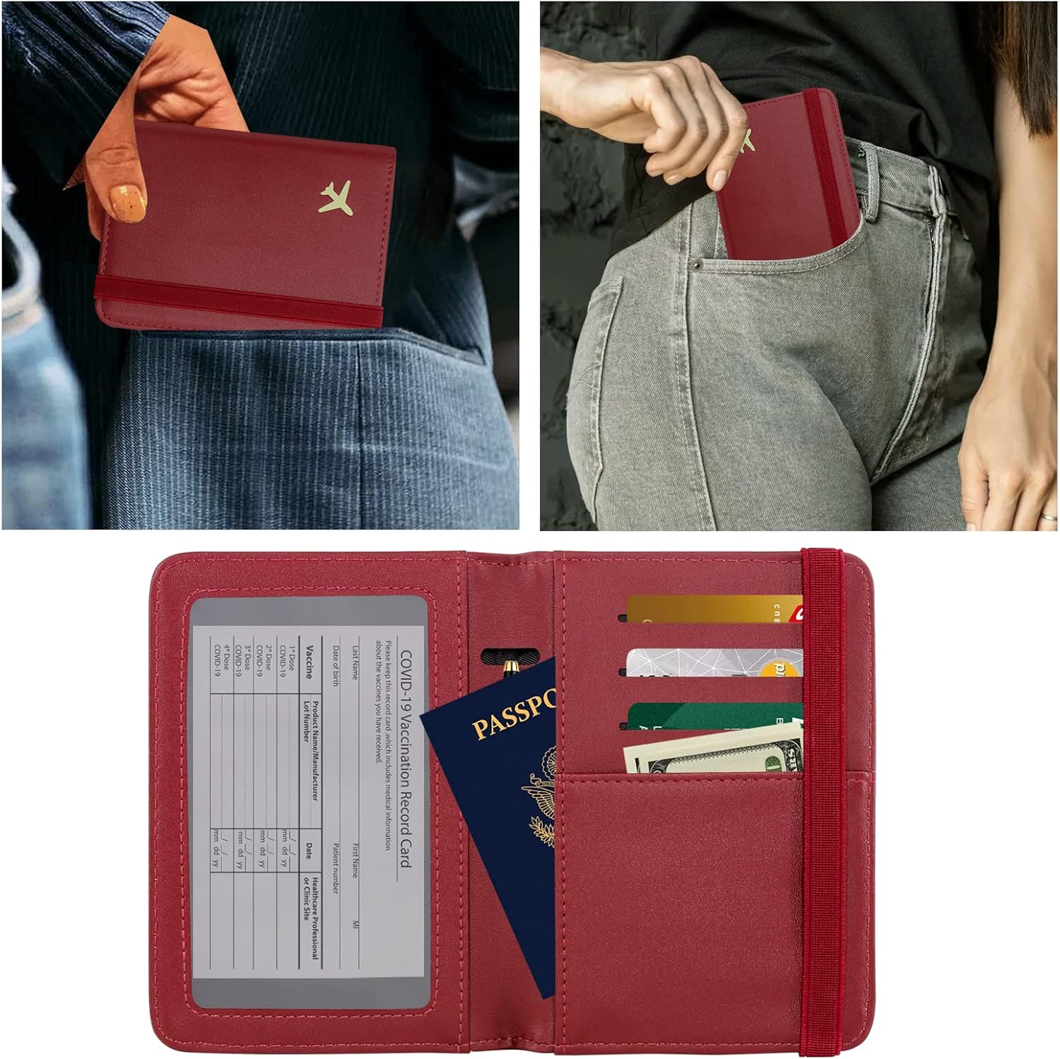 - 【Multi-functional】1 transparent Vaccine Card Sleeve,2 Passport Slot, 3 Card Slots, 1 Ticket department and 1 Pen holder (pen not included). Your passports, boarding pass, cards, CDC vaccination card will be organized well in the travel document organizer