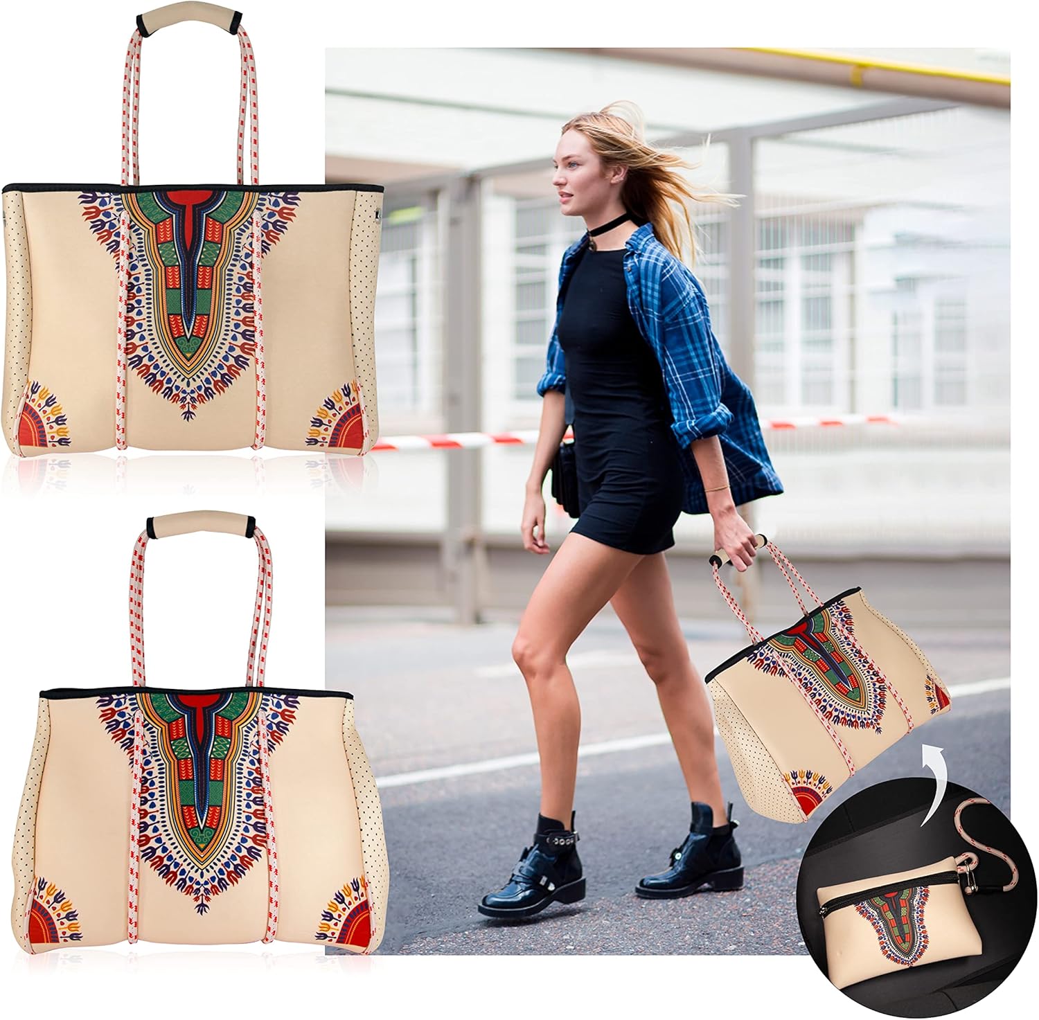 QOGiR Neoprene Multipurpose Beach Bag Tote with Inner Zipper Pocket … … … …