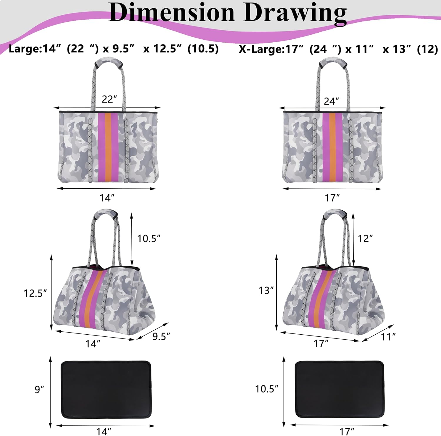 - FASHIONABLE AND ELEGANT: Using the high-quality neoprene and polyester material, unique classic design style, these beach bags look particularly stylish and elegant. The same bag can be changed three styles, you have three options only pay a bag. Please look at the picture and make your choice.