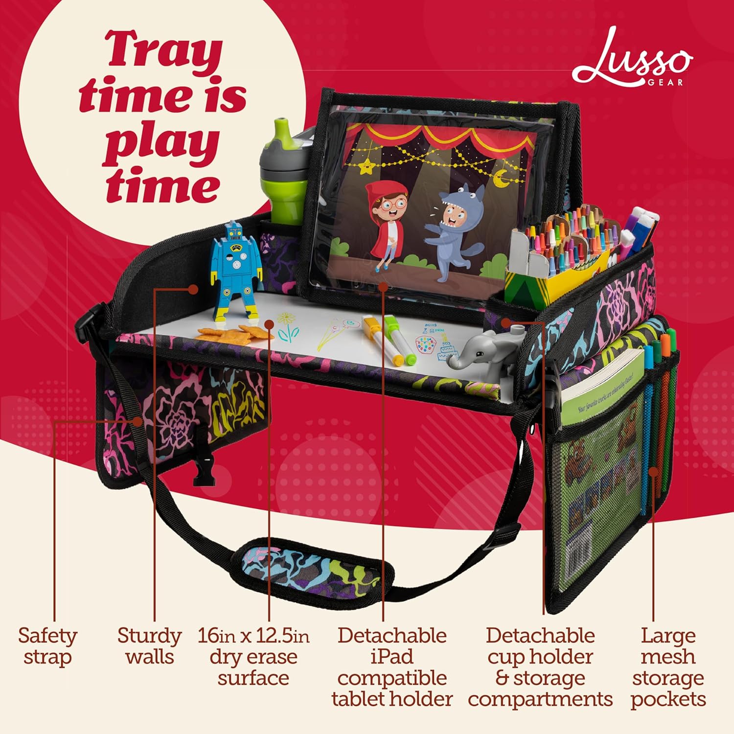 - QUALITY YOU CAN TRUST: At Lusso Gear, we take pride in crafting top-notch baby travel gear. Discover our range of car accessories and toddler travel activities. Our car tray for kids is designed to impress and make every journey smoother for you and your children