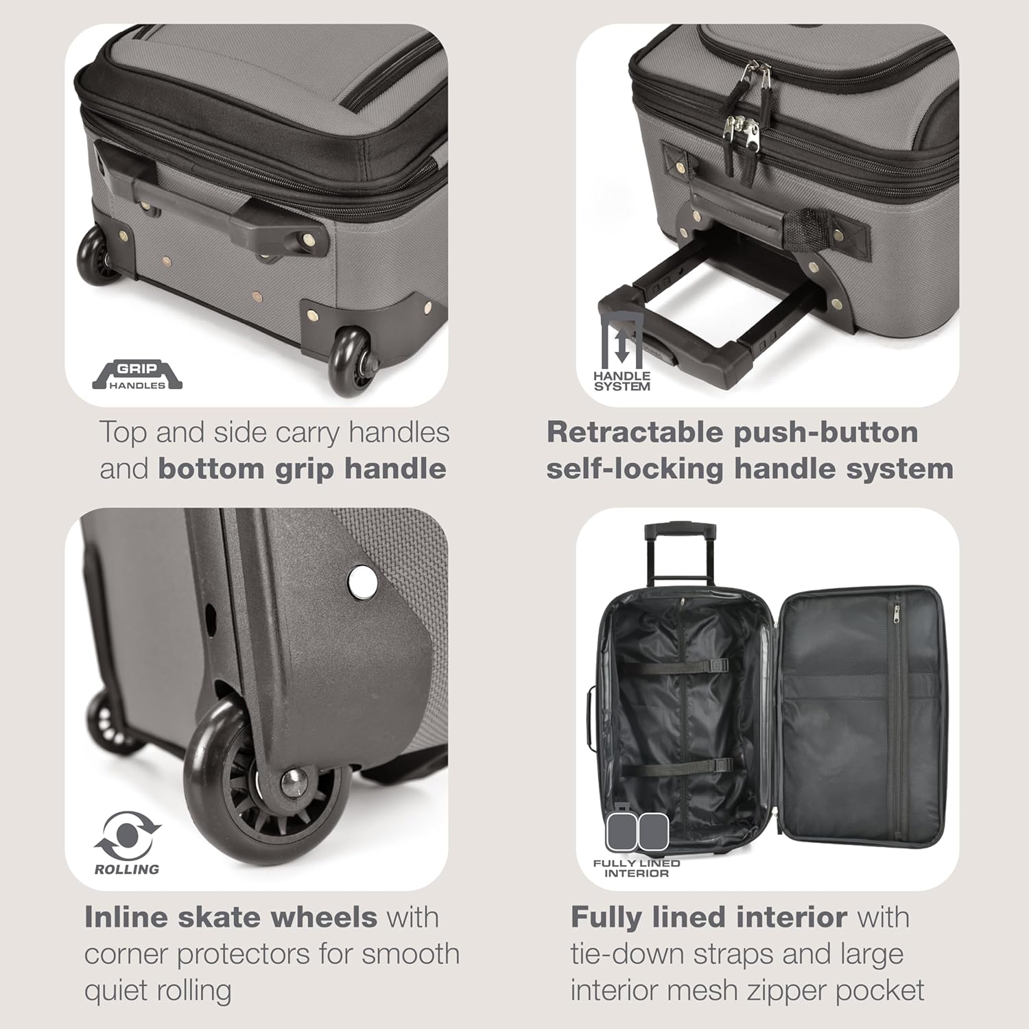 U.S. Traveler Rio Fabric Expandable Carry-on Luggage, Rolling Suitcase, Grey, 2 Wheel Set