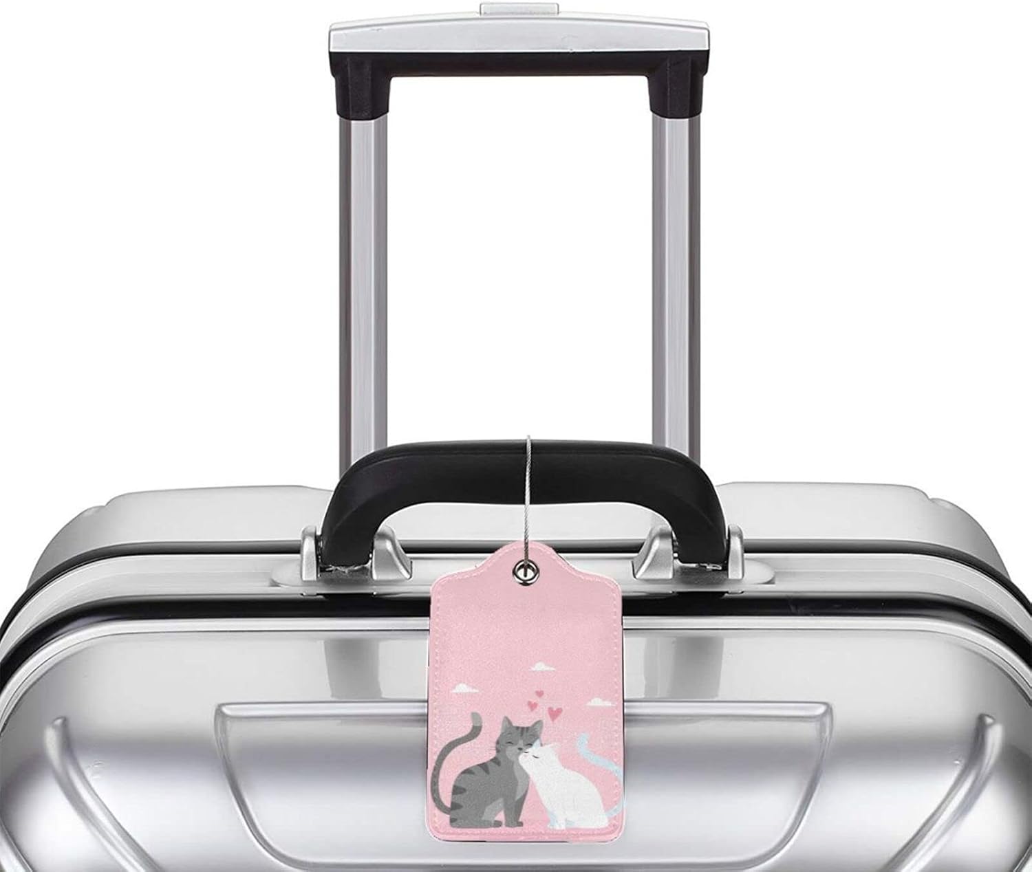 2PC Cats in Love Pattern Luggage Tag with Pink Background, Sublimation Printed Travel Suitcase Baggage Identifiers Tags for Women Men Couple Mr Mrs Children Kids Honeymoon Wedding Gift
