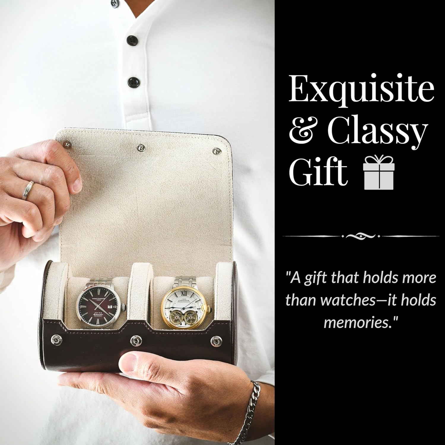- ⌚️ DISTINCT WATCH SEPARATION – Our watch roll leather features durable dividers that securely hold your watches, eliminating concerns about scratches and watch bumping. A two-watch travel case seamlessly combines style and functionality, ensuring your timepieces are protected and beautifully presented.