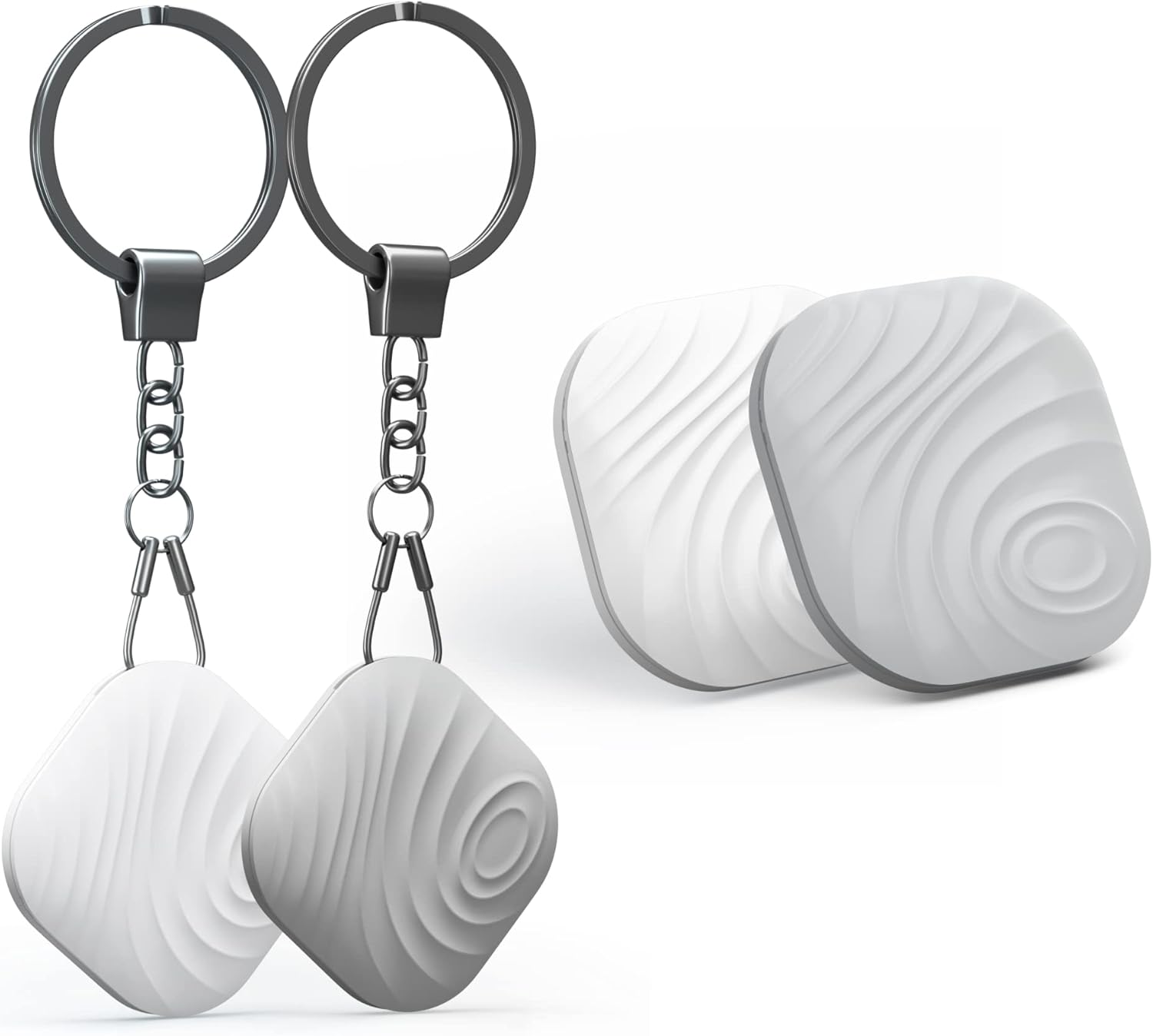 Key Finder, Bluetooth Tracker Item Locator with Key Chain for Keys Pet Wallets or Backpacks and Tablets, Batteries Include (1 White & 1Gray, 2 Pack)
