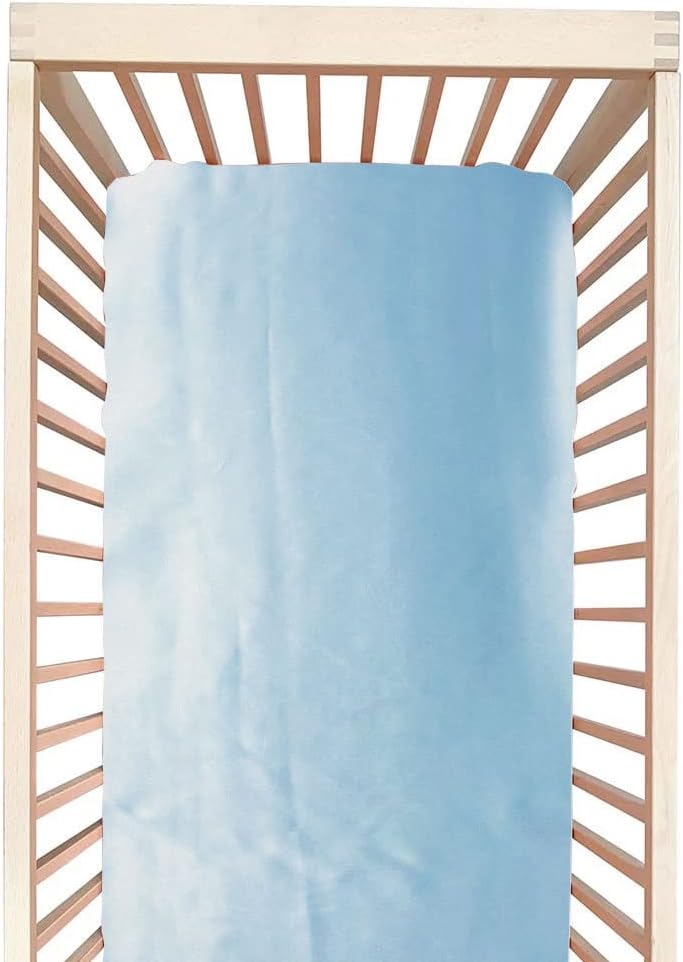 100% Mulberry Silk Crib Sheet for Baby Hair, Standard Crib Mattress Sheet for Boys & Girls, Soft Smooth Breathable Baby Crib Fitted Sheets 28x52, Grey Blue