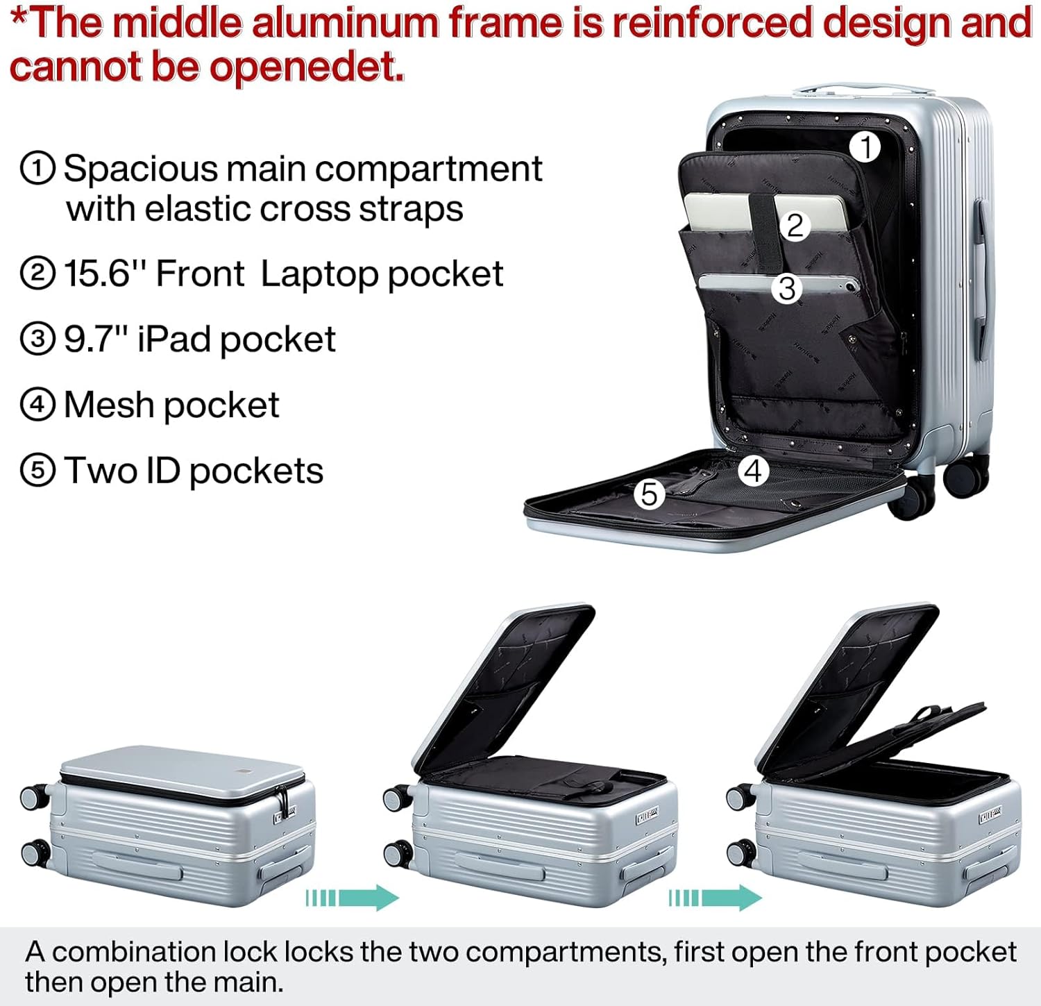 - 【Elegant Short Travel】A multi in one hardshell luggage designed specifically for short business trips, front opening can quick access to laptop, easy to pass airport security checks. Shoulders no longer need to carry heavy backpacks, made your flights so much easier.(Not clamshell opening method,the middle aluminum frame cannot be opened.)