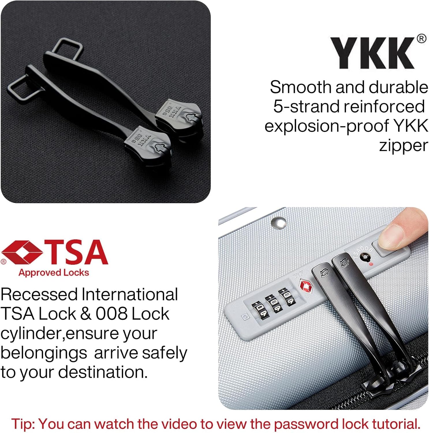 - 【Spinner wheels and Travel locks】The hard sided luggage with spinner wheels with rotating wheels that are very durable, quiet, and have strong load-bearing capacity. It can be easily operated on different roads such as cobblestone and carpet roads;The travel approved carry on luggage can protect the security of electronic products and undergo non-destructive safety checks, making it more convenient and secure.