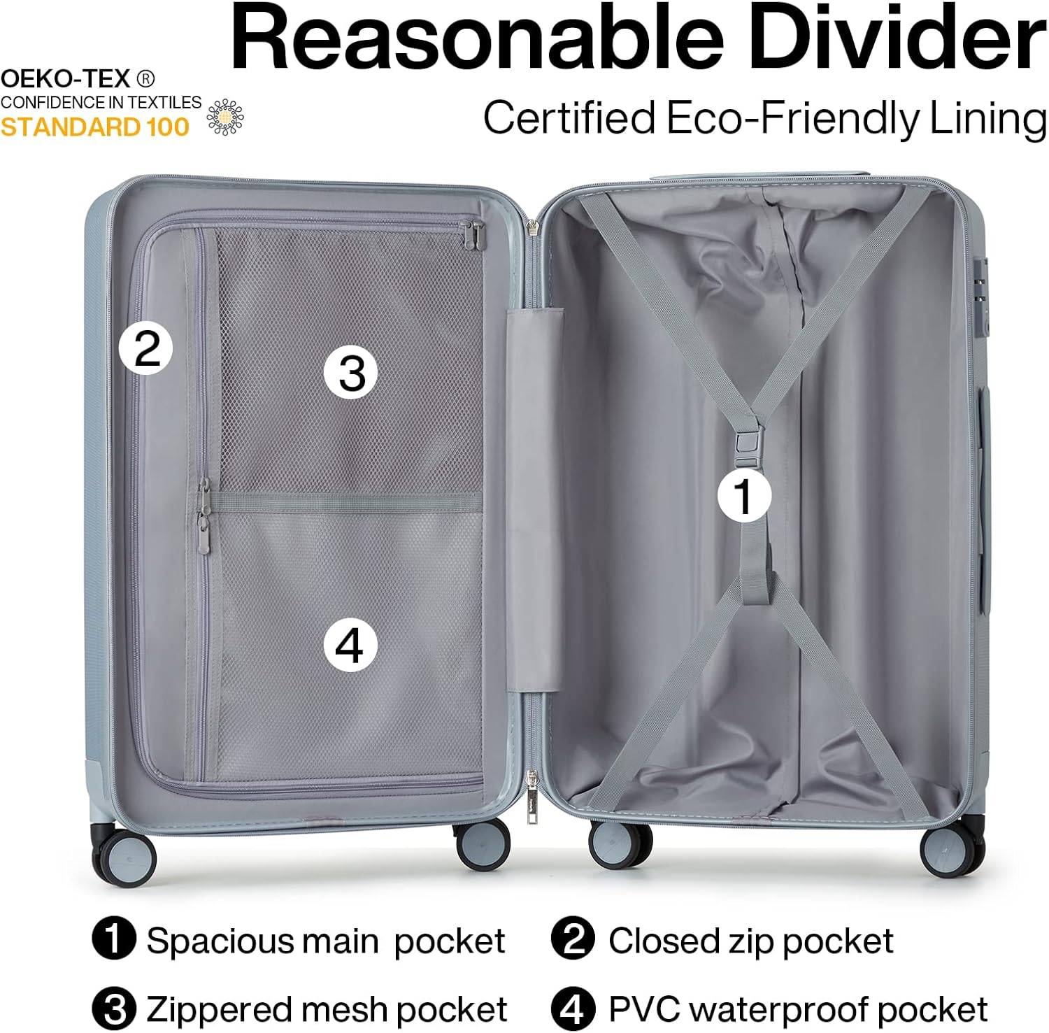 - 【Better Material】OEKO-TEX@ Comfortable lining,Close fitting clothes can also be safely stored. And it get benifits from PC hard shell that designed with 3-layer micro-diamond textured surface make it solid and anti-scratch,keeping cases beautiful trip after trip.