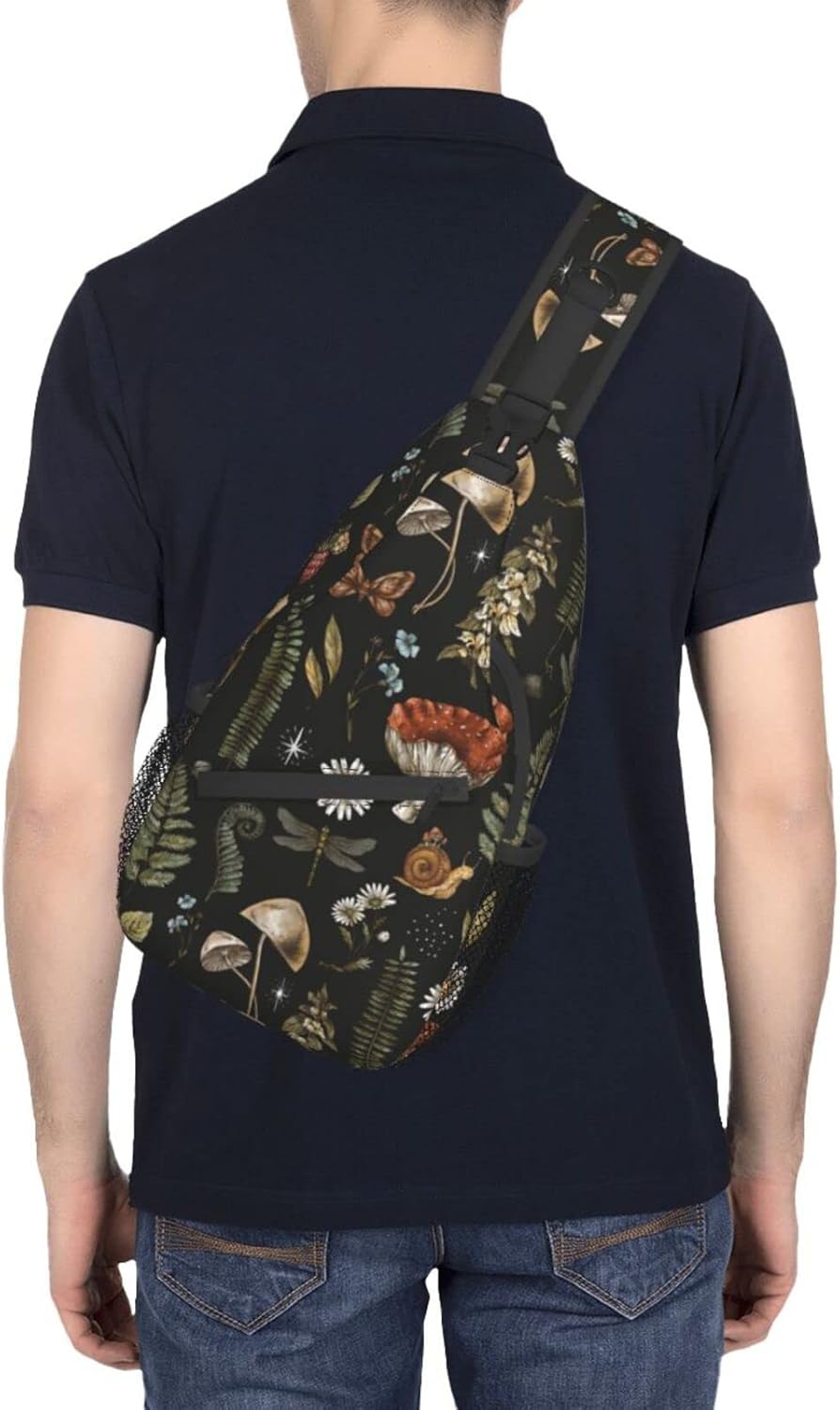 SUPLUCHOM Sling Bag Vintage Mushroom Leaf Forest Hiking Daypack Crossbody Shoulder Backpack Travel Chest Pack for Men Women Over 12 Years Old