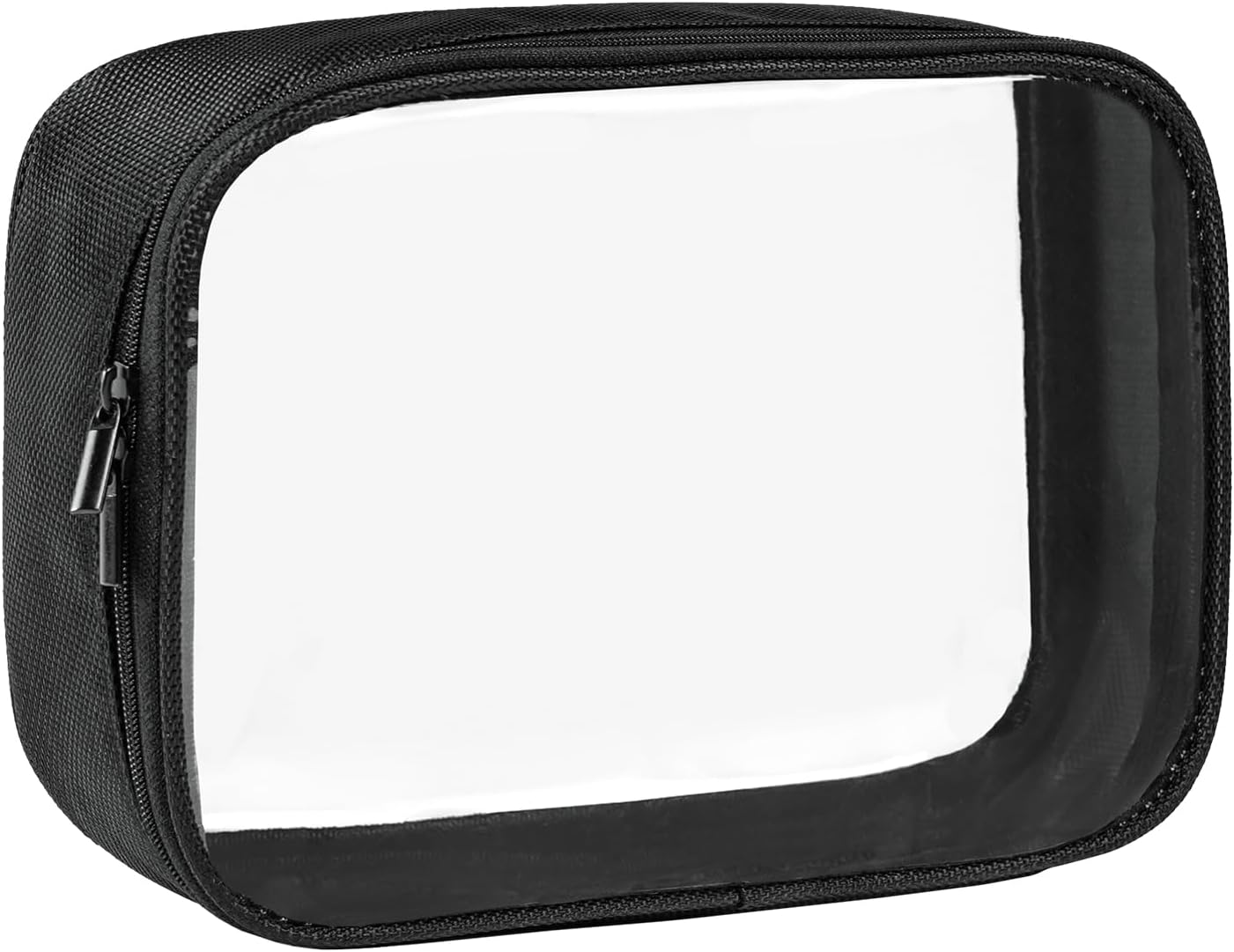 Moyad TSA Approved Clear Toiletry Bag, 1 Pack Quart Size 3-1-1 Liquids Pouch for Travel, Transparent Makeup & Cosmetic Organizer for Women Men, Black