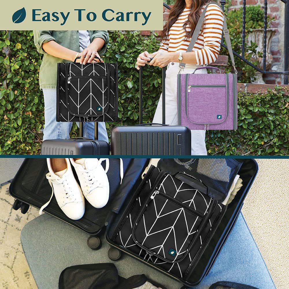 PAVILIA Extra Large Toiletry Bag Travel Bag for Women Men, Hanging Cosmetic Organizer, Water Resistant Makeup Bag for Accessories Toiletries, Travel Essentials Kit (Black Chevron)