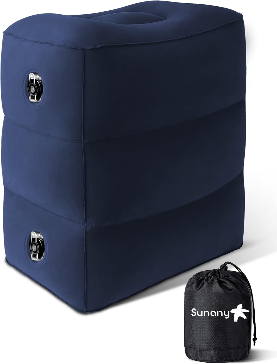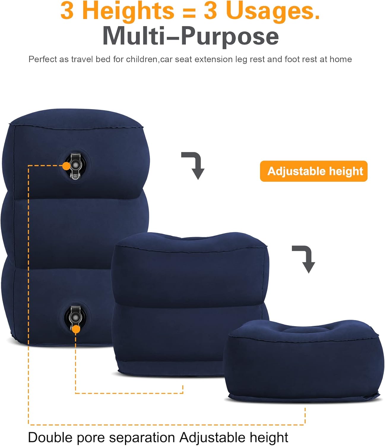 Sunany Inflatable Foot Rest Pillow for Travel, Kids/Adults Airplane Travel Pillow-Adjustable Height Cushions,for Kids to Sleep While Traveling,Suitable for Office, Home and Any Travel(Blue)