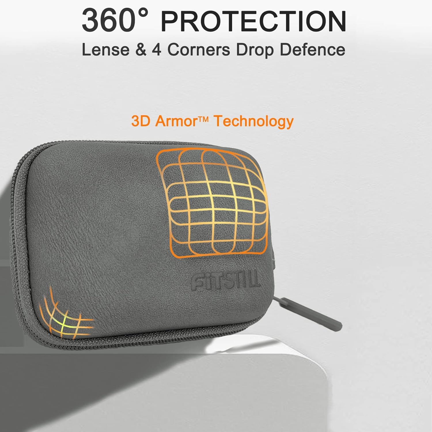 FiTSTILL Grey PU Mini Carrying Case for Go Pro Hero 12/11/10/9/8/7/(2018)/6/5 Black,Hard Shell Travel Storage Case for DJI Osmo Action,AKASO,Campark,YI Action Camera and More