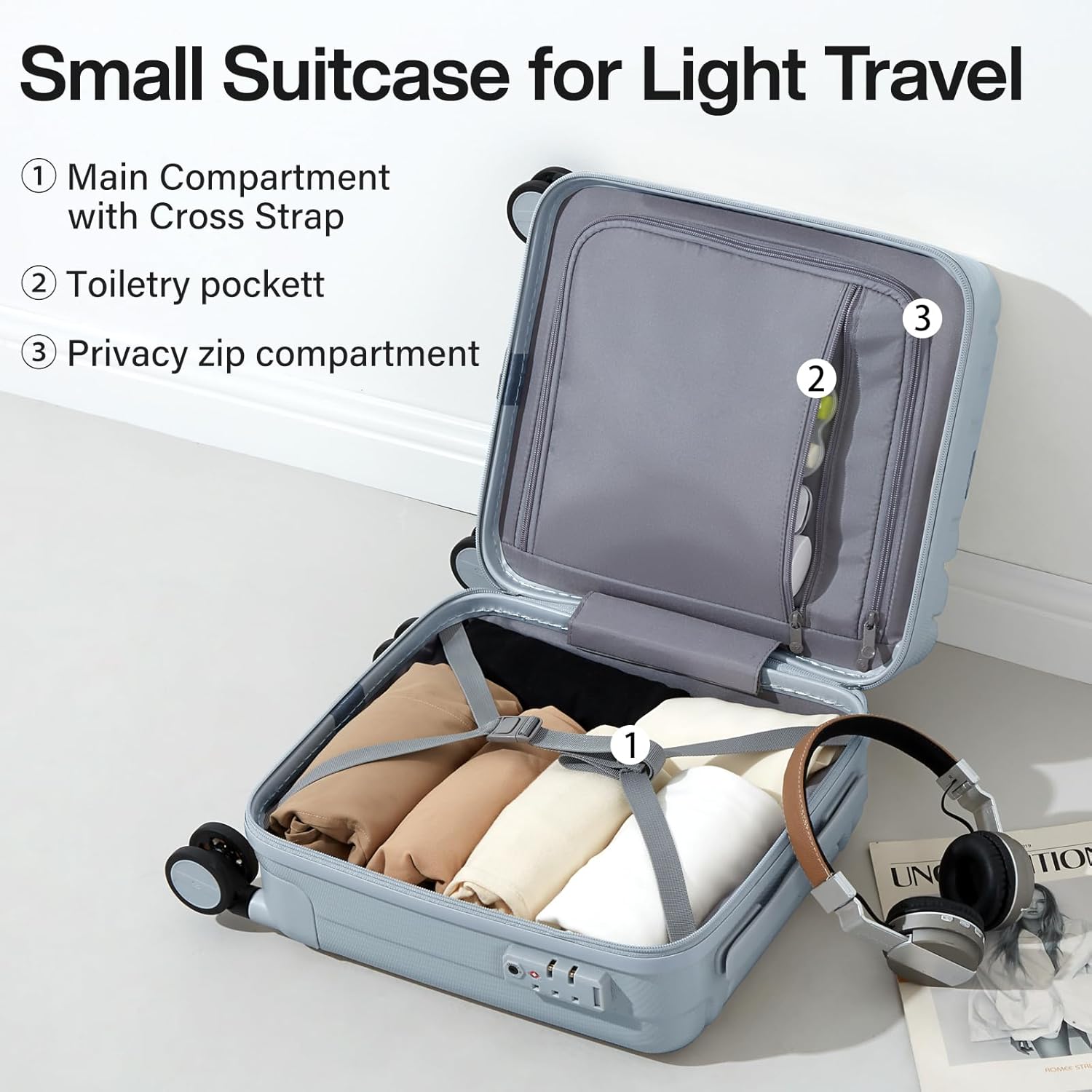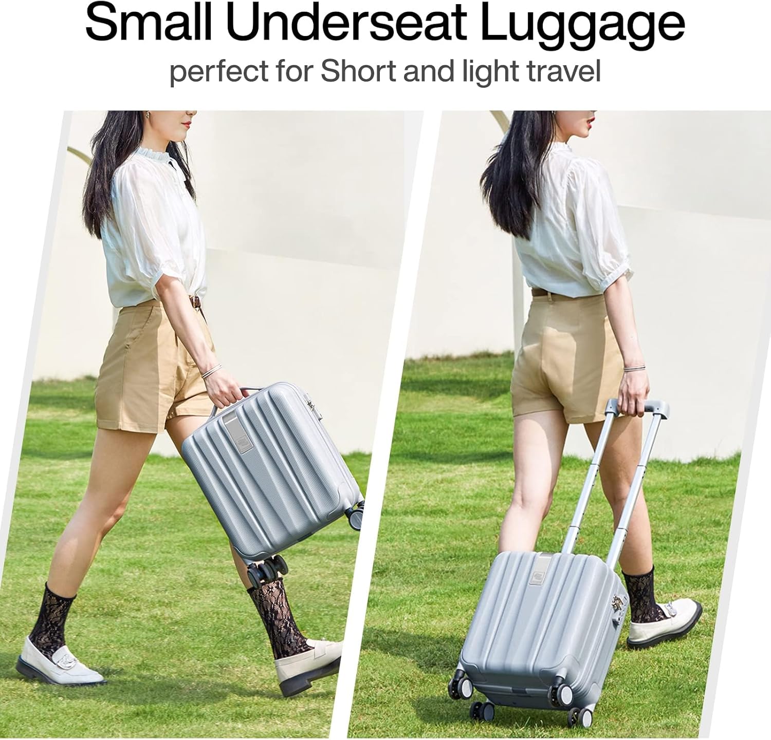 - 【FITS UNDERSEAT】This suitcase fits under most airline seats for easy access to belongings en route. Including wheels and handles(can ont expandable),Underseat 14-Inch:L12.4 x W8.46 x H15.59", 23L, 6.1LB, mini underseat carry on luggage airline approved & can fit in the overhead bin.