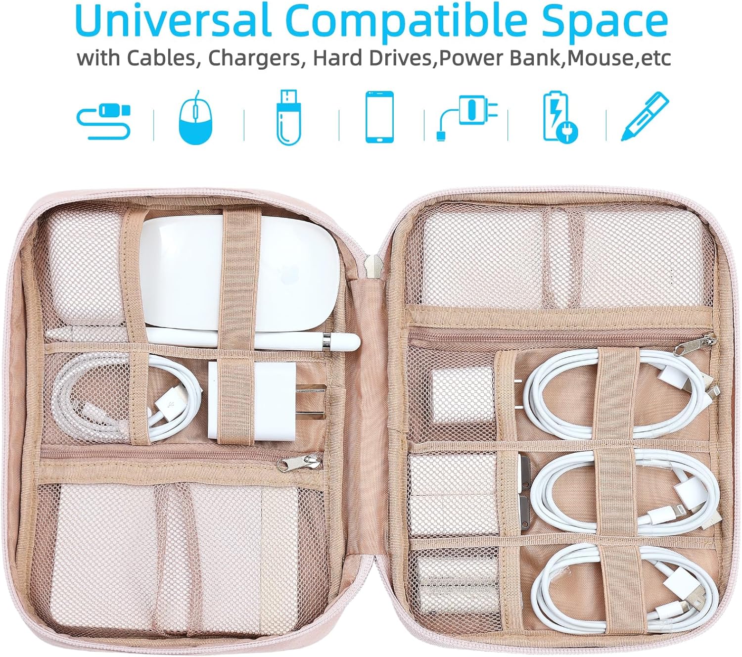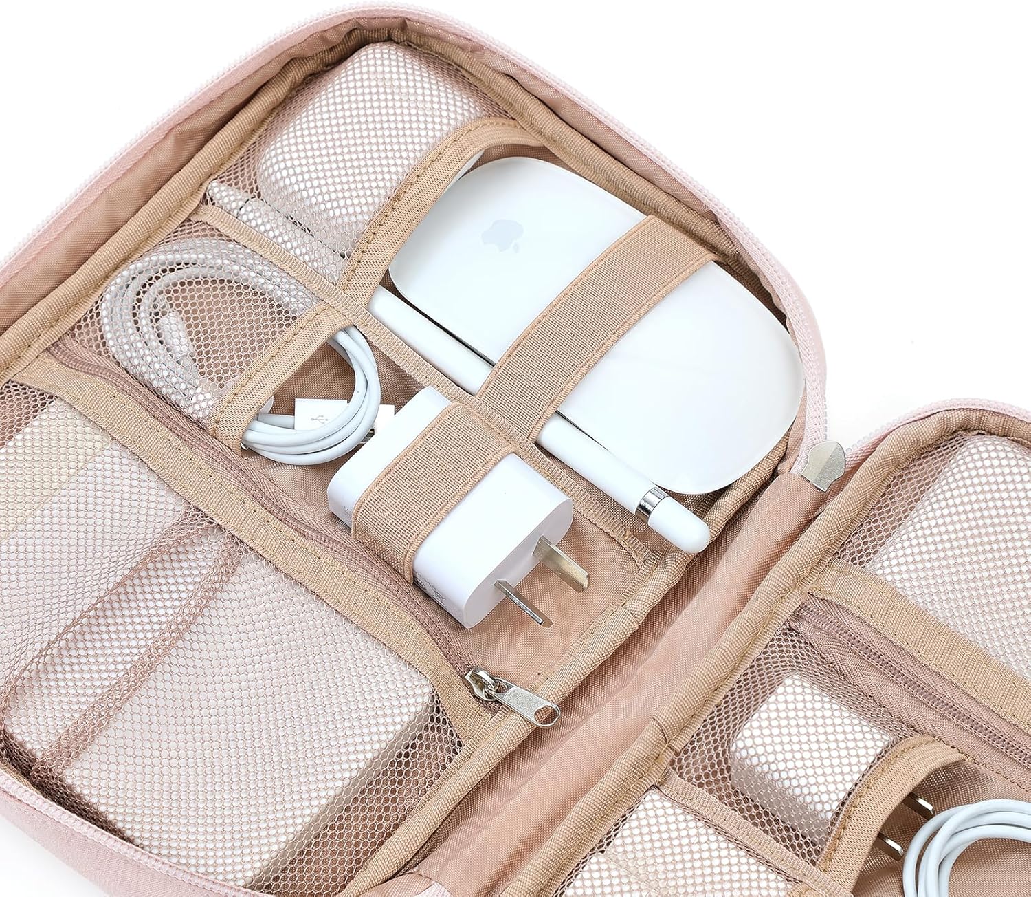 NISHEL Travel Cord Organizer Case, Tech Electronic Bag, Essentials for Charger, Cable, Phone, Hard Drive, USB, SD Card, Pink