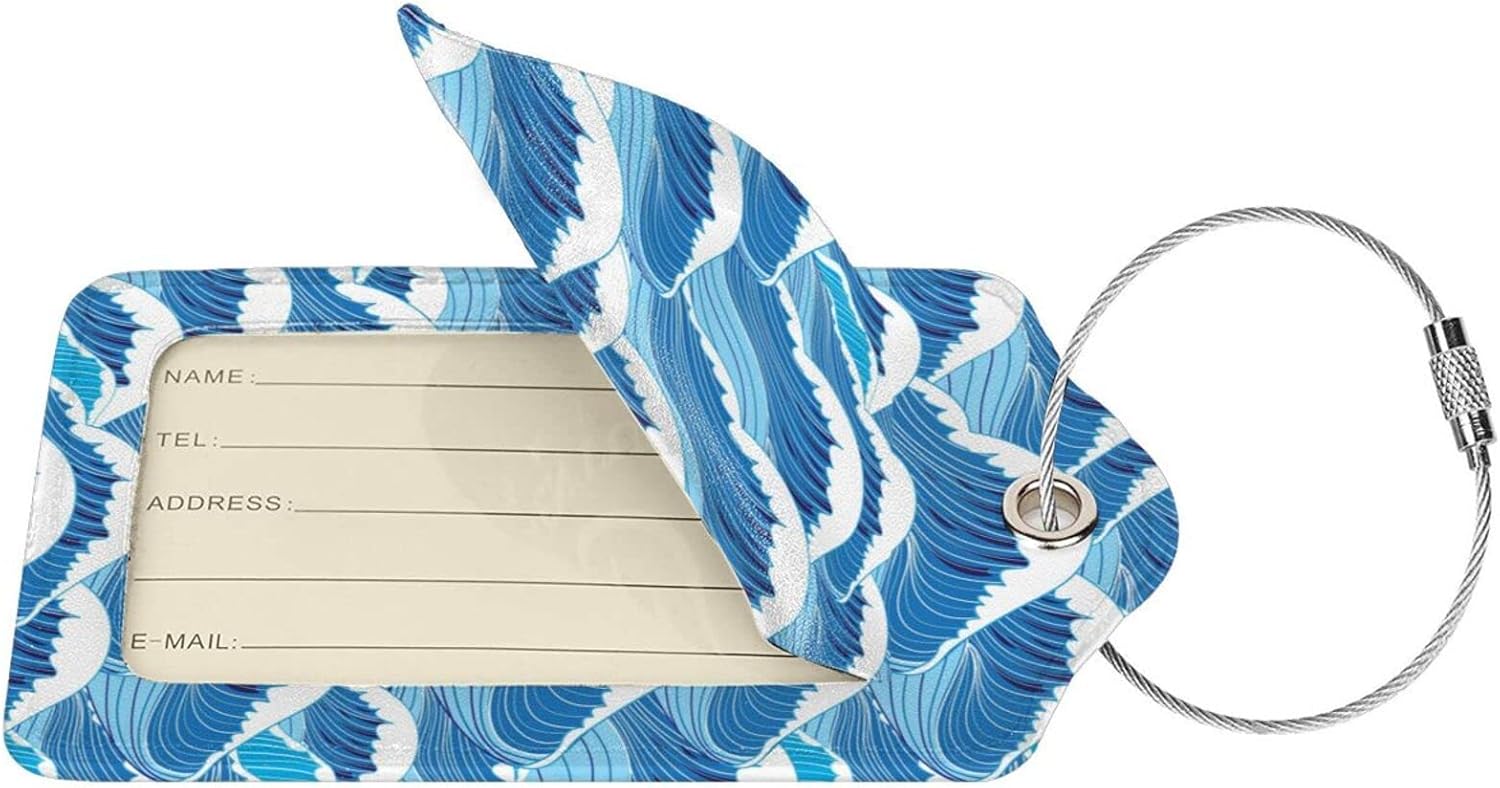 2PC Cartoon Waves Luggage Tag, Cute Blue Sublimation Printed Travel Suitcase Baggage Identifiers Tags for Women Men Kids Honeymoon Wedding Gift