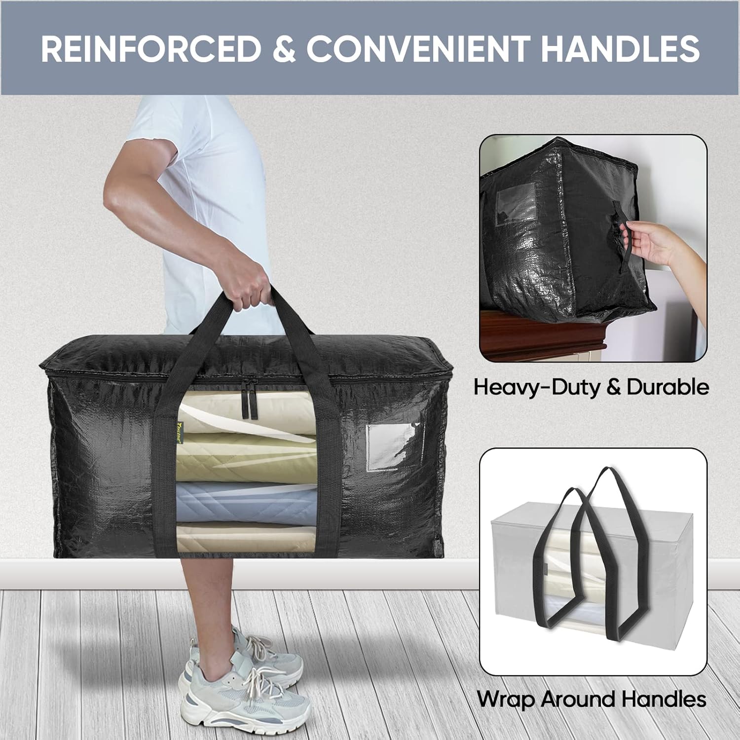 BALEINE 8-Pack Oversized Moving Bags with Reinforced Handles, Heavy-Duty Storage Tote Moving Supplies for Packaging, Camping (Black w/Window, 8-Pack)